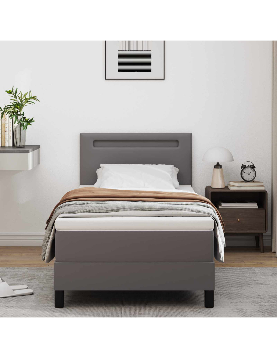 Il Modern Box Spring Bed offre un perfetto equilibrio tra stile e funzionalità, diventando un accogliente elemento centrale della camera da letto. Con linee pulite e design minimalista, si adatta a ogni ambiente moderno. La pelle sintetica e l’imbottitura in schiuma offrono un aspetto elegante e un comfort tangibile, perfetto per chi cerca l’armonia tra forma e funzione nel proprio spazio per dormire.