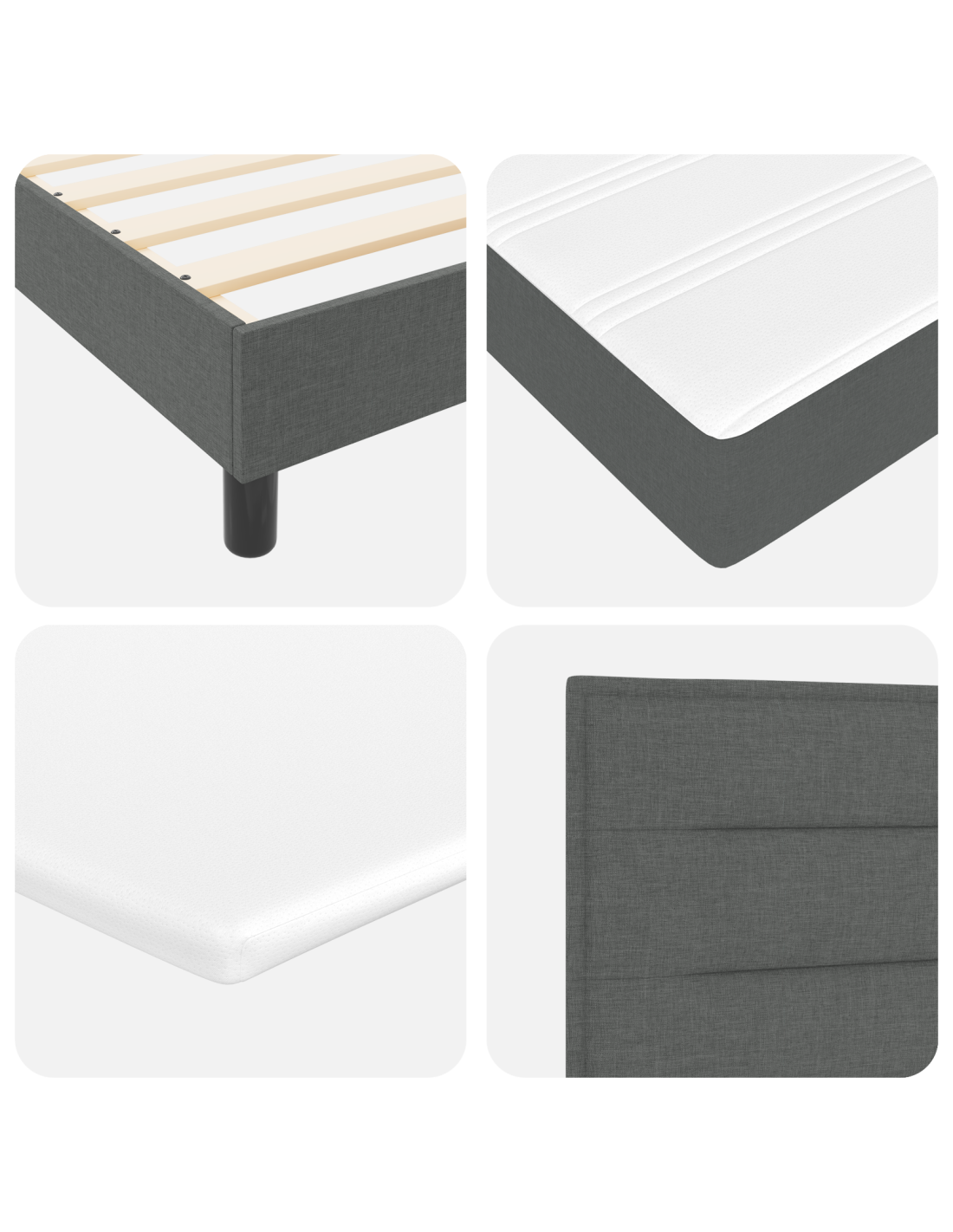 - Componenti Inclusi: Include un materasso flessibile con molle insacchettate per un supporto personalizzato, riducendo il trasferimento di movimento. La testiera in poliestere di alta qualità è sia accogliente che visivamente attraente, arricchendo l'atmosfera della camera. Ogni componente è selezionato con cura per offrire comfort e stile, migliorando l'esperienza dell'utente.