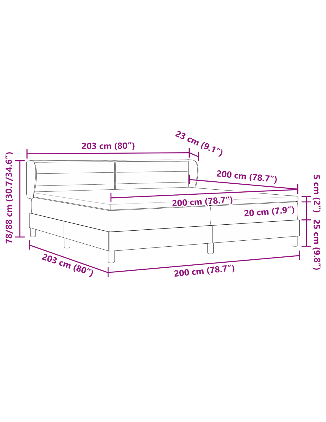 - Dimensione materasso: Imperatore (200 cm x 200 cm / 79" x 79")