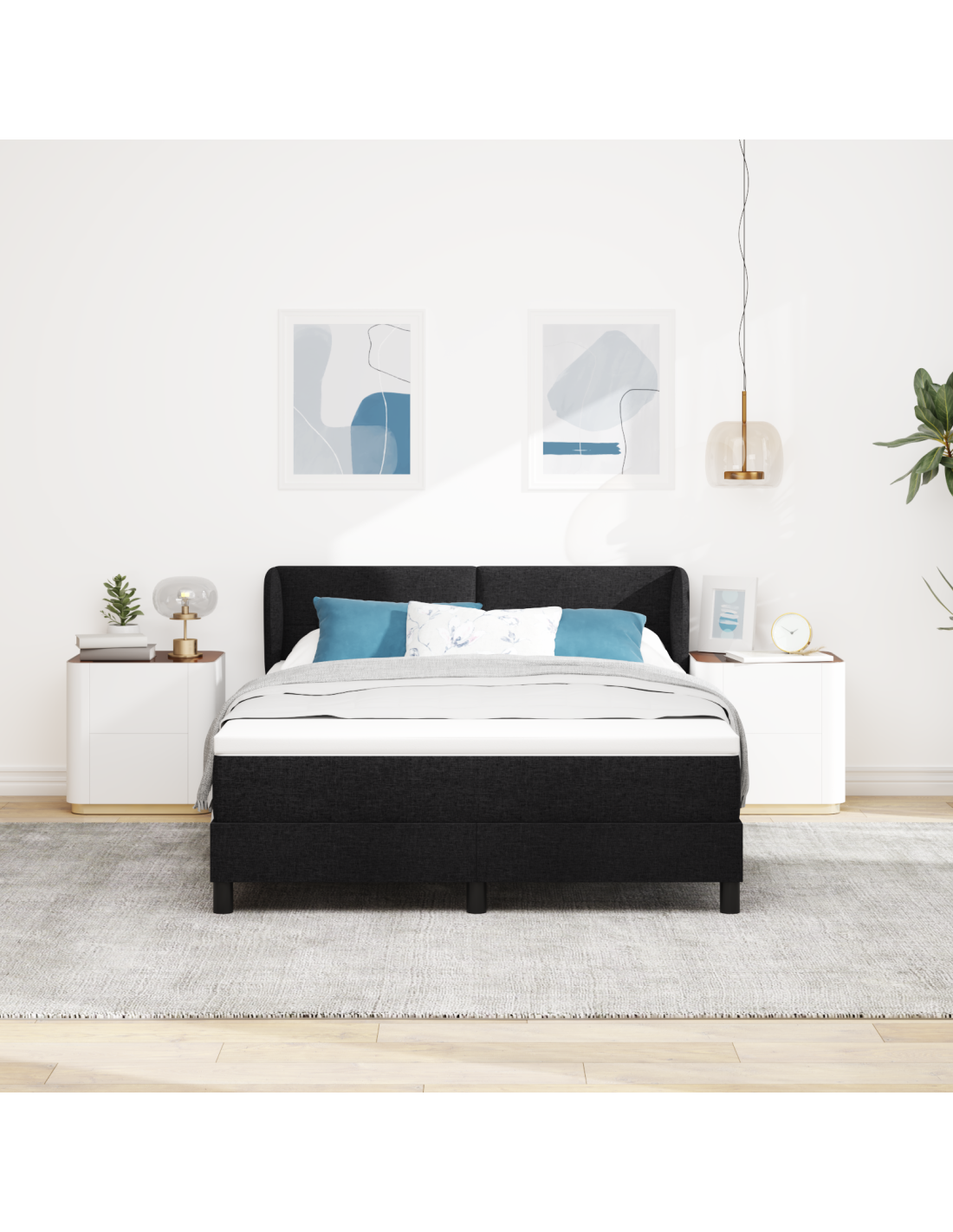 - Componenti Inclusi: Include un materasso flessibile con molle insacchettate per un supporto personalizzato, riducendo il trasferimento di movimento. La testiera in poliestere di alta qualità è sia accogliente che visivamente attraente, arricchendo l'atmosfera della camera. Ogni componente è selezionato con cura per offrire comfort e stile, migliorando l'esperienza dell'utente.