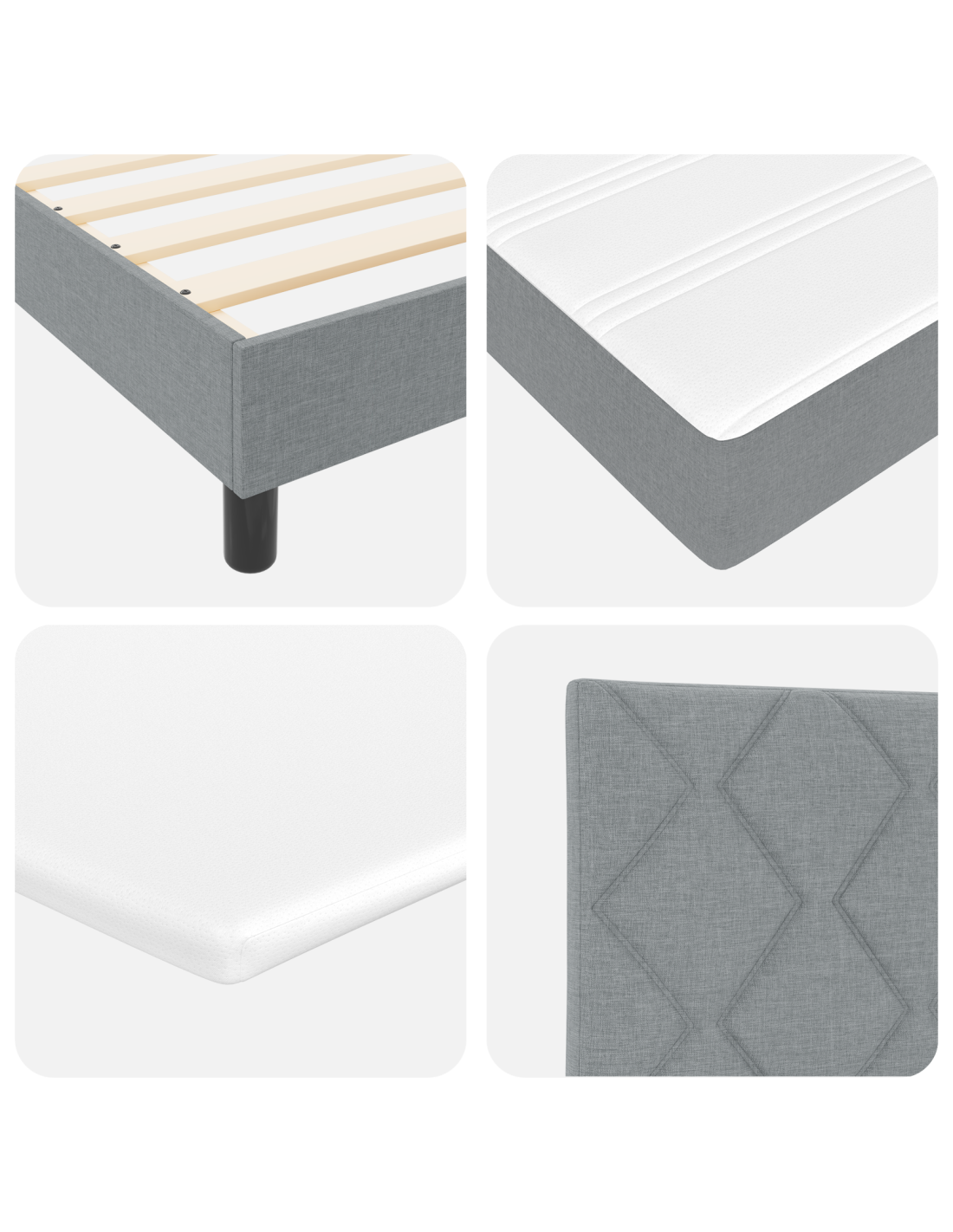- Componenti Inclusi: Include un materasso flessibile con molle insacchettate per un supporto personalizzato, riducendo il trasferimento di movimento. La testiera in poliestere di alta qualità è sia accogliente che visivamente attraente, arricchendo l'atmosfera della camera. Ogni componente è selezionato con cura per offrire comfort e stile, migliorando l'esperienza dell'utente.