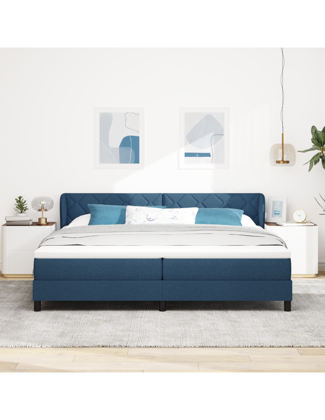 - Componenti Inclusi: Include un materasso flessibile con molle insacchettate per un supporto personalizzato, riducendo il trasferimento di movimento. La testiera in poliestere di alta qualità è sia accogliente che visivamente attraente, arricchendo l'atmosfera della camera. Ogni componente è selezionato con cura per offrire comfort e stile, migliorando l'esperienza dell'utente.