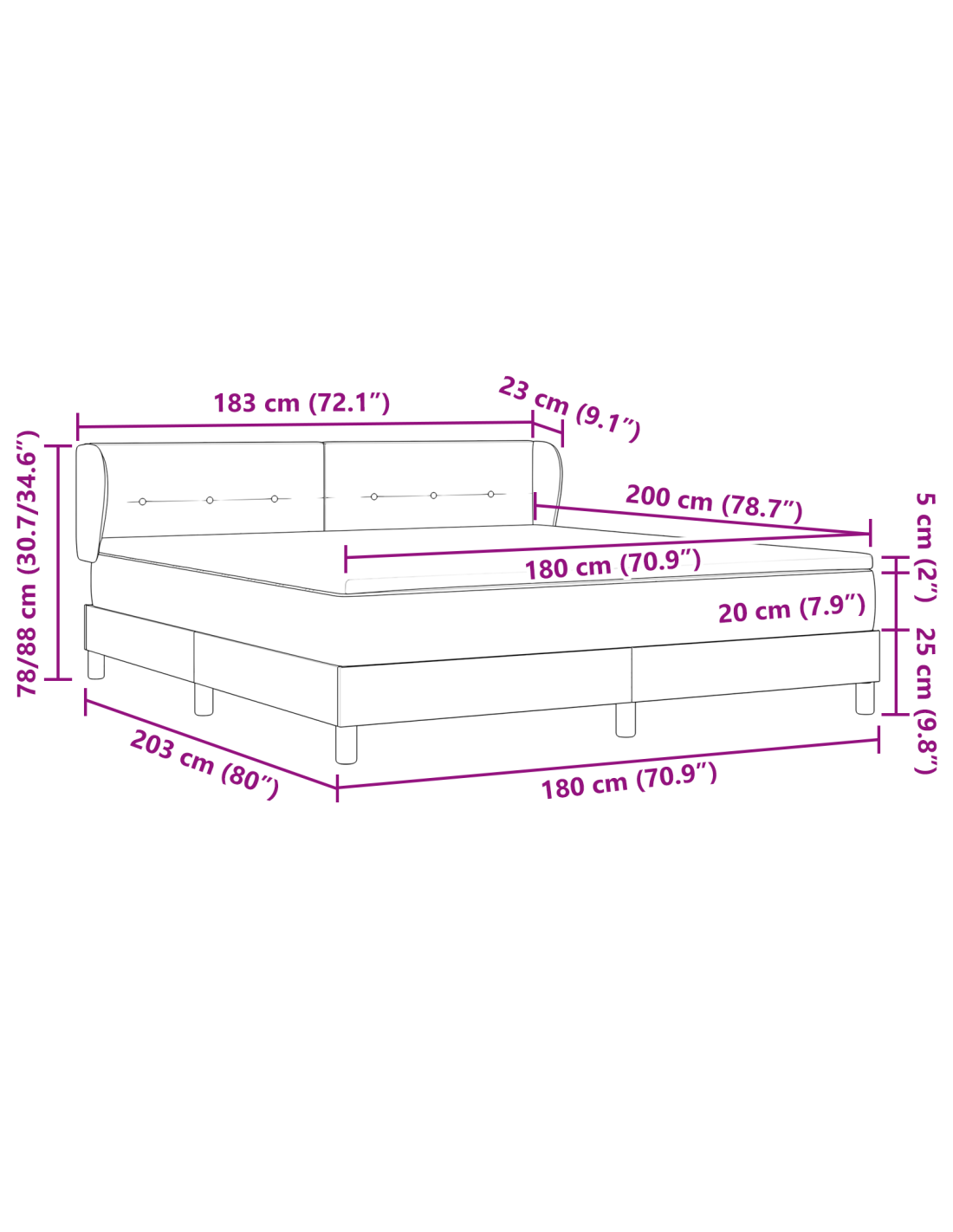 - Dimensione materasso: Super king (180 cm x 200 cm / 71" x 79")