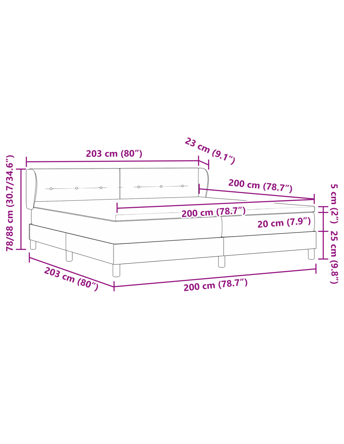 - Dimensione materasso: Imperatore (200 cm x 200 cm / 79" x 79")