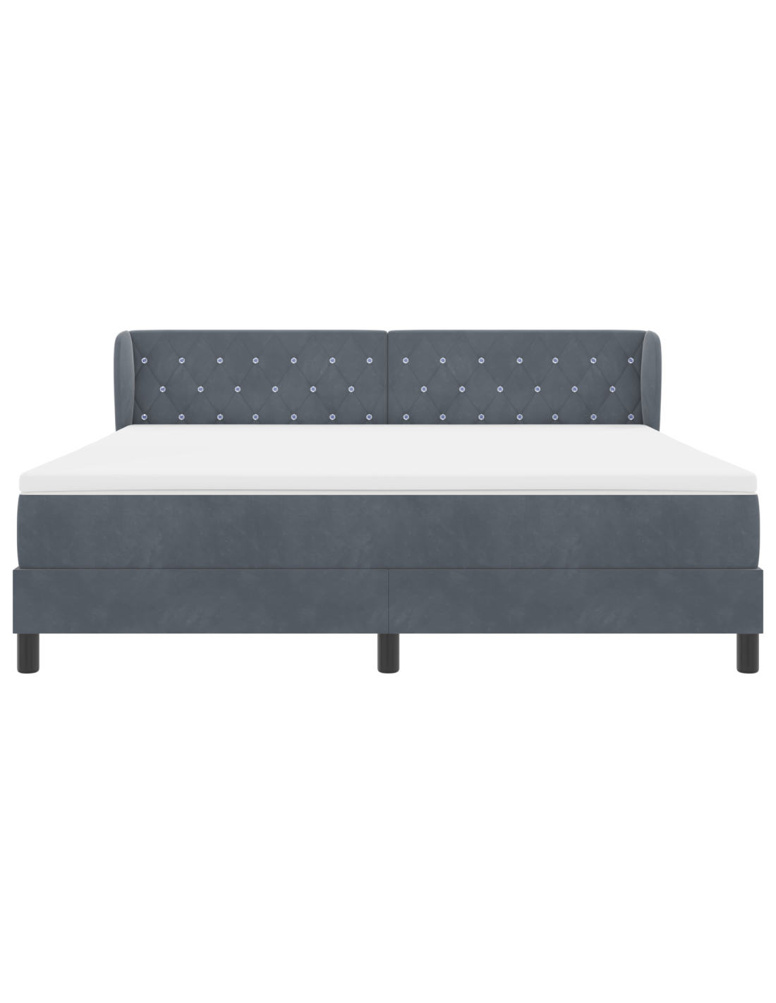 - Componenti Inclusi: Il letto viene fornito con un materasso e un topper per un comfort eccezionale. La testiera, fatta in schiuma e legno massello di pino, fornisce supporto extra per collo e schiena. Le gambe in plastica nera danno stabilità e si abbinano al look moderno.