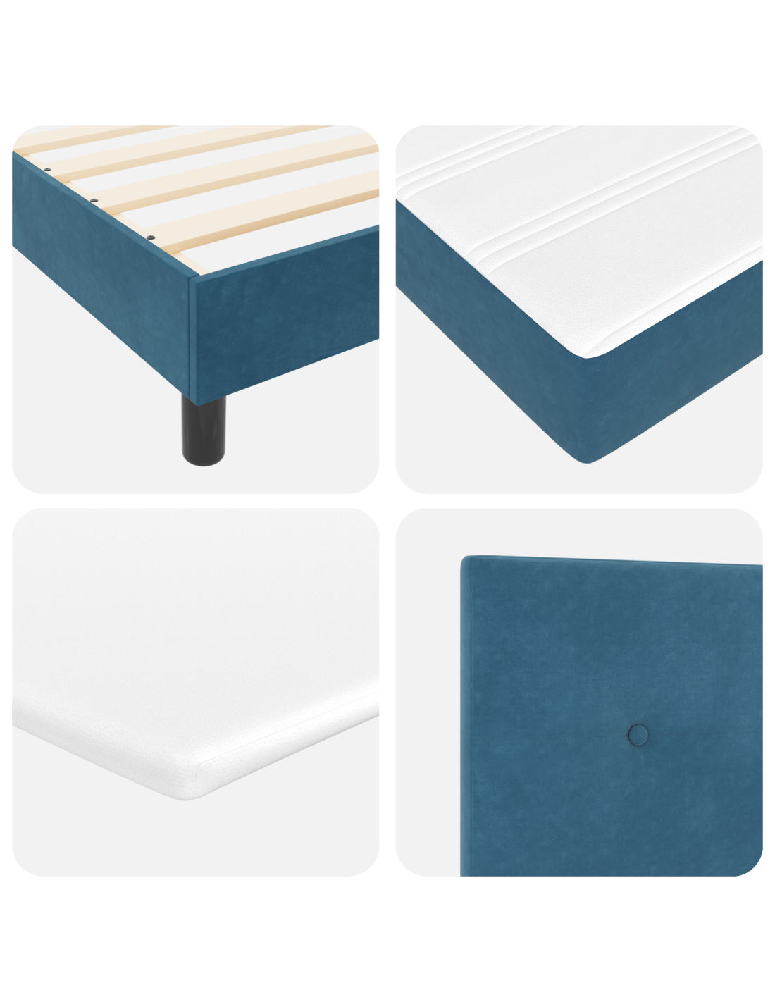 - Manutenzione: Tieni il letto in ottime condizioni spolverandolo con un panno morbido e asciutto. Evita detergenti aggressivi per proteggere il rivestimento in velluto, assicurando che il letto rimanga accogliente come il giorno in cui l'hai montato.