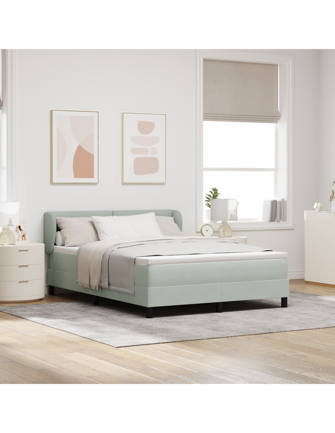 - Materiali: Il letto è realizzato con una solida struttura in legno ingegnerizzato rivestita in velluto lussuoso, che gli conferisce uno stile morbido e attraente. La sua robustezza garantisce un supporto duraturo, mentre il velluto aggiunge un tocco di eleganza all'estetica della tua camera.