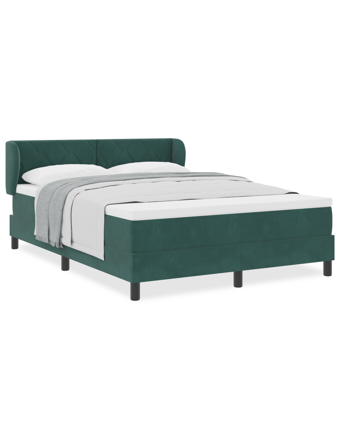 - Materiali: Il letto è realizzato con una solida struttura in legno ingegnerizzato rivestita in velluto lussuoso, che gli conferisce uno stile morbido e attraente. La sua robustezza garantisce un supporto duraturo, mentre il velluto aggiunge un tocco di eleganza all'estetica della tua camera.