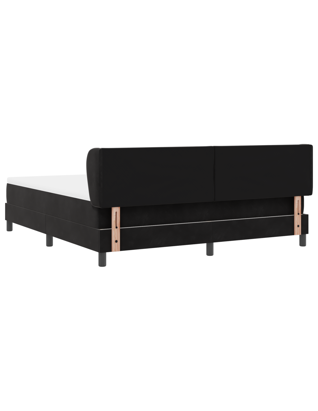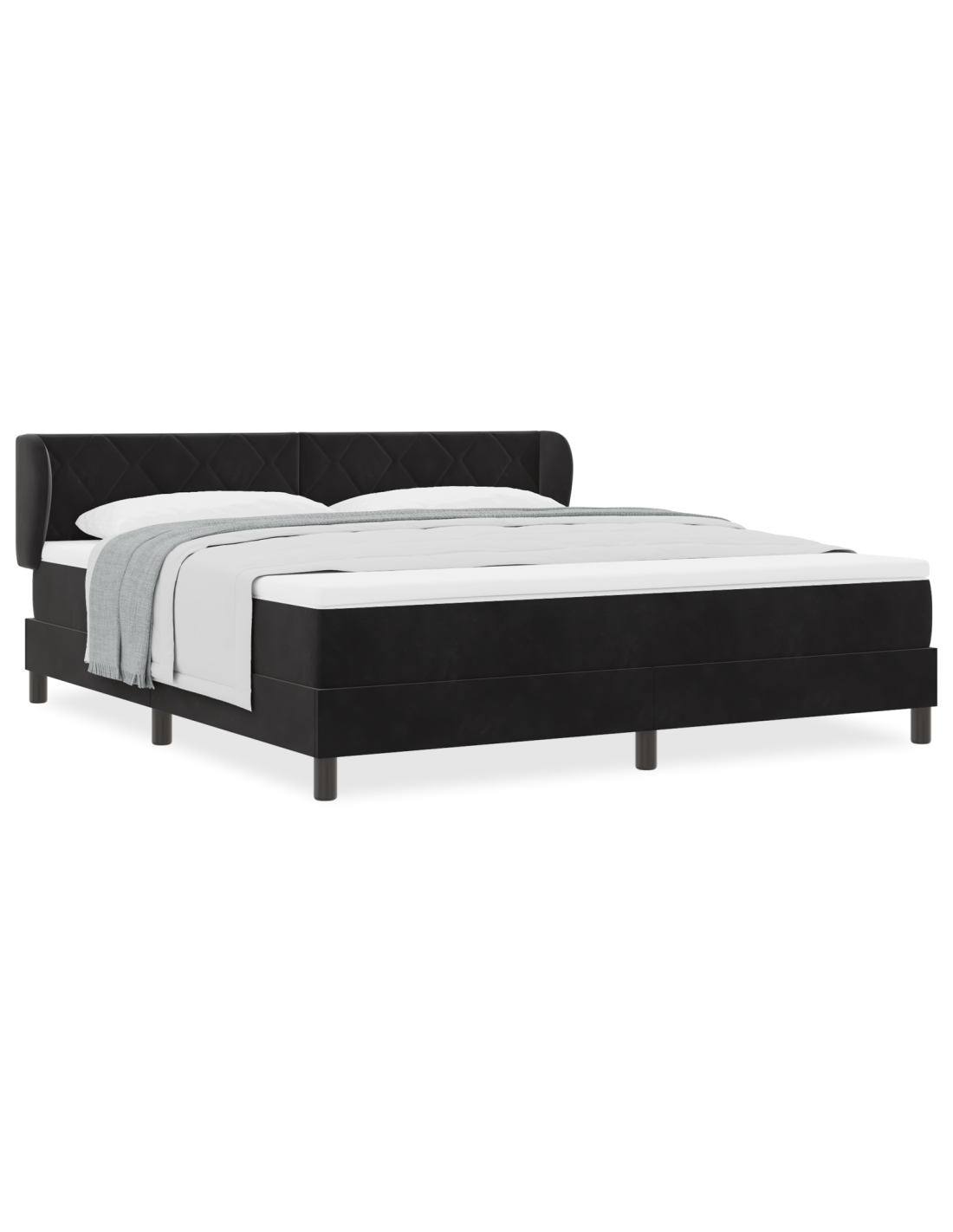 - Componenti Inclusi: Il letto viene fornito con un materasso e un topper per un comfort eccezionale. La testiera, fatta in schiuma e legno massello di pino, fornisce supporto extra per collo e schiena. Le gambe in plastica nera danno stabilità e si abbinano al look moderno.