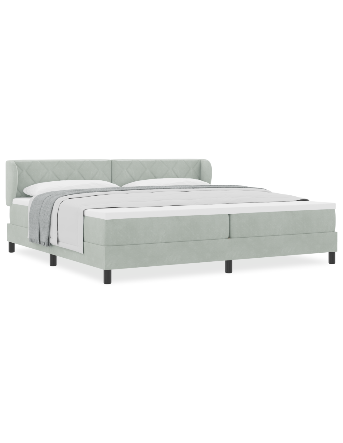 - Materiali: Il letto è realizzato con una solida struttura in legno ingegnerizzato rivestita in velluto lussuoso, che gli conferisce uno stile morbido e attraente. La sua robustezza garantisce un supporto duraturo, mentre il velluto aggiunge un tocco di eleganza all'estetica della tua camera.