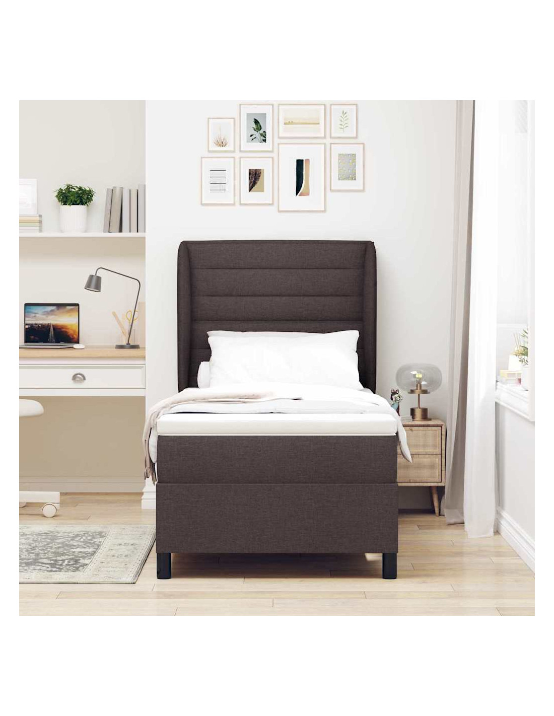 Questo letto a molle con materassi trasforma la tua camera da letto in un rifugio chic, combinando stile e praticità. Il design snello ha linee minimaliste, perfette per spazi moderni. Puoi regolare la testiera a tuo piacimento, così puoi cambiarne l'altezza o la posizione come preferisci. Le caratteristiche regolabili e il materasso medio-rigido ti permettono di goderti una buona notte di sonno, aggiungendo un tocco di eleganza a qualsiasi stanza.