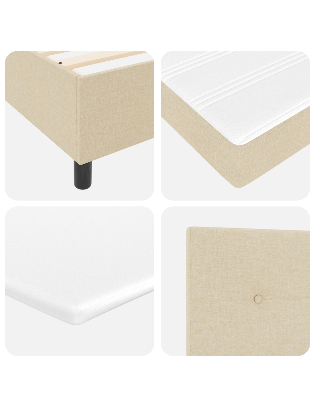 - Materiale Tessuto: Il tessuto del letto è comodo ed elegante, per un look chic che si abbina perfettamente a qualsiasi camera moderna senza sovrastare l’arredamento.