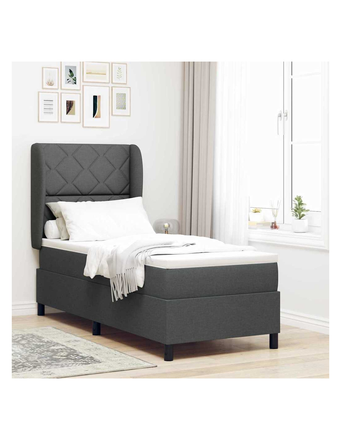 - Materiale Tessuto: Il tessuto del letto è comodo ed elegante, per un look chic che si abbina perfettamente a qualsiasi camera moderna senza sovrastare l’arredamento.