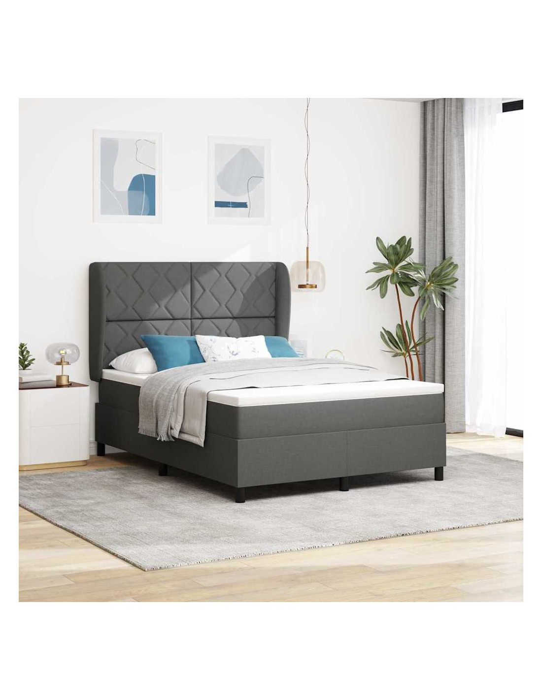 - Materiale Tessuto: Il tessuto del letto è comodo ed elegante, per un look chic che si abbina perfettamente a qualsiasi camera moderna senza sovrastare l’arredamento.