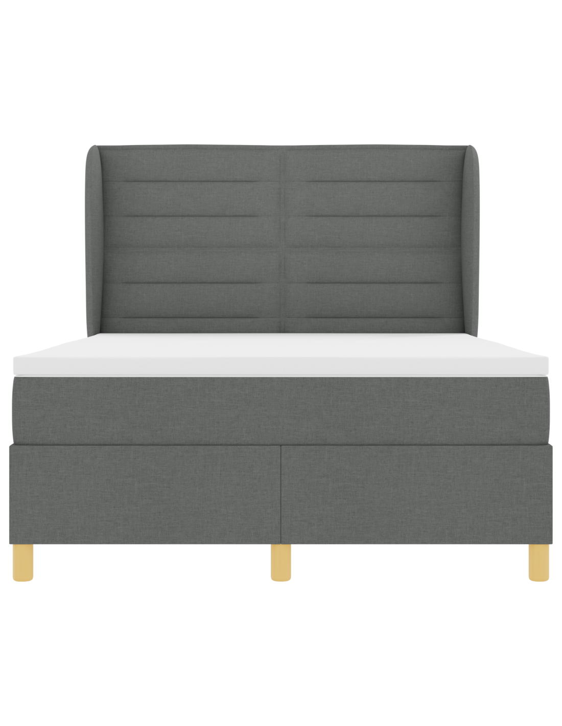 Il letto con molle e materasso in tessuto grigio scuro è dove lo stile moderno incontra la praticità. È un pezzo unico per qualsiasi camera da letto, con linee pulite e un look semplice. È un grande mix di comfort e robustezza, perfetto per tutti.