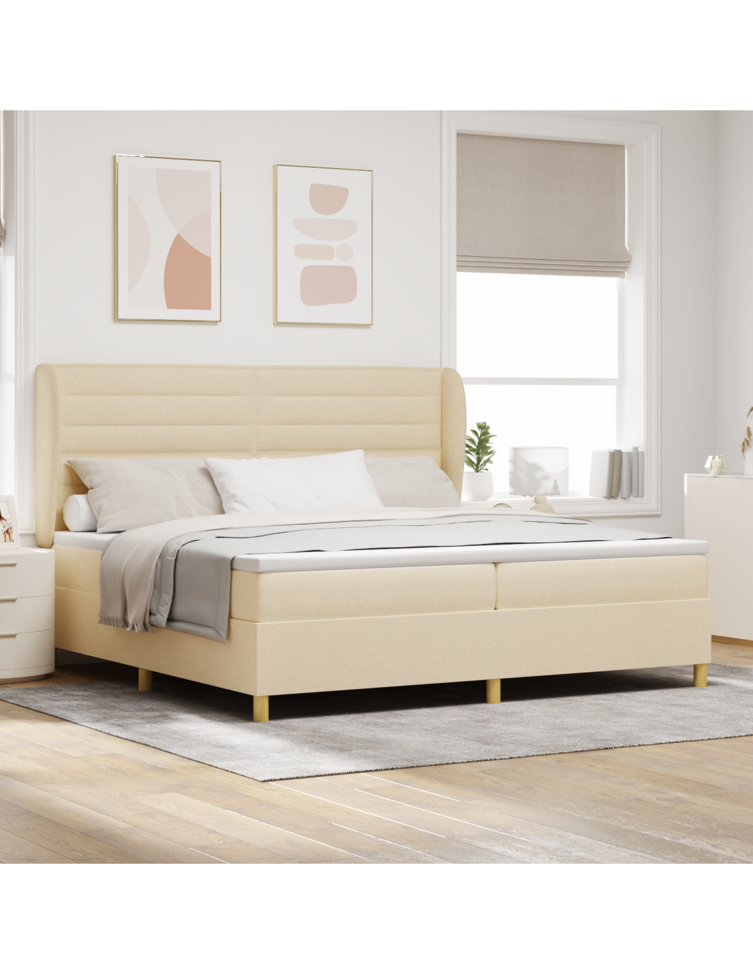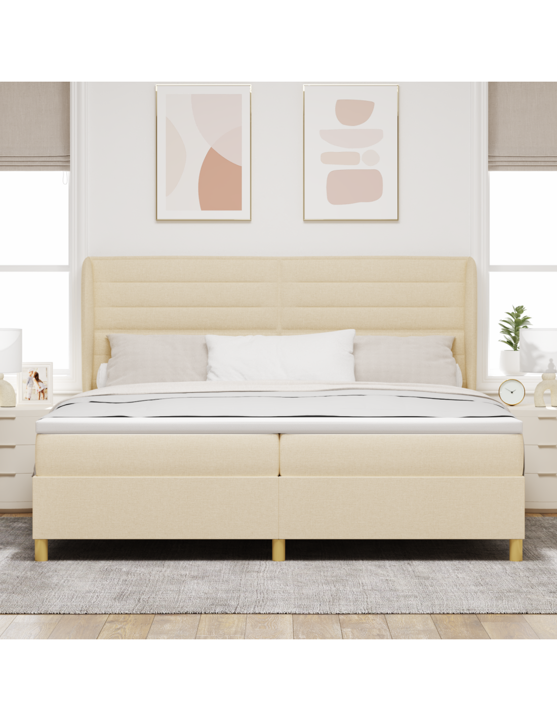 - Elementi Estetici: Ricoperto in un tessuto di alta qualità, il letto appare accogliente e raffinato. La trama intrecciata lo rende interessante, assicurando che si adatti bene a ogni stile di camera, dal minimalista al tradizionale.