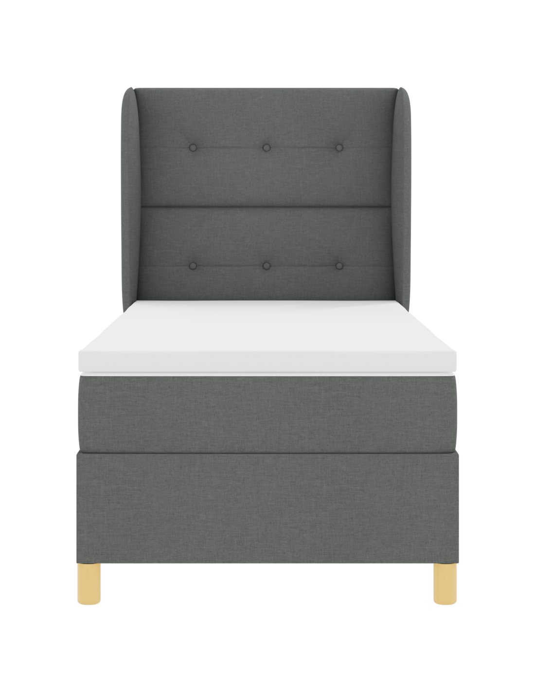 Il letto con molle e materasso in tessuto grigio scuro è dove lo stile moderno incontra la praticità. È un pezzo unico per qualsiasi camera da letto, con linee pulite e un look semplice. È un grande mix di comfort e robustezza, perfetto per tutti.