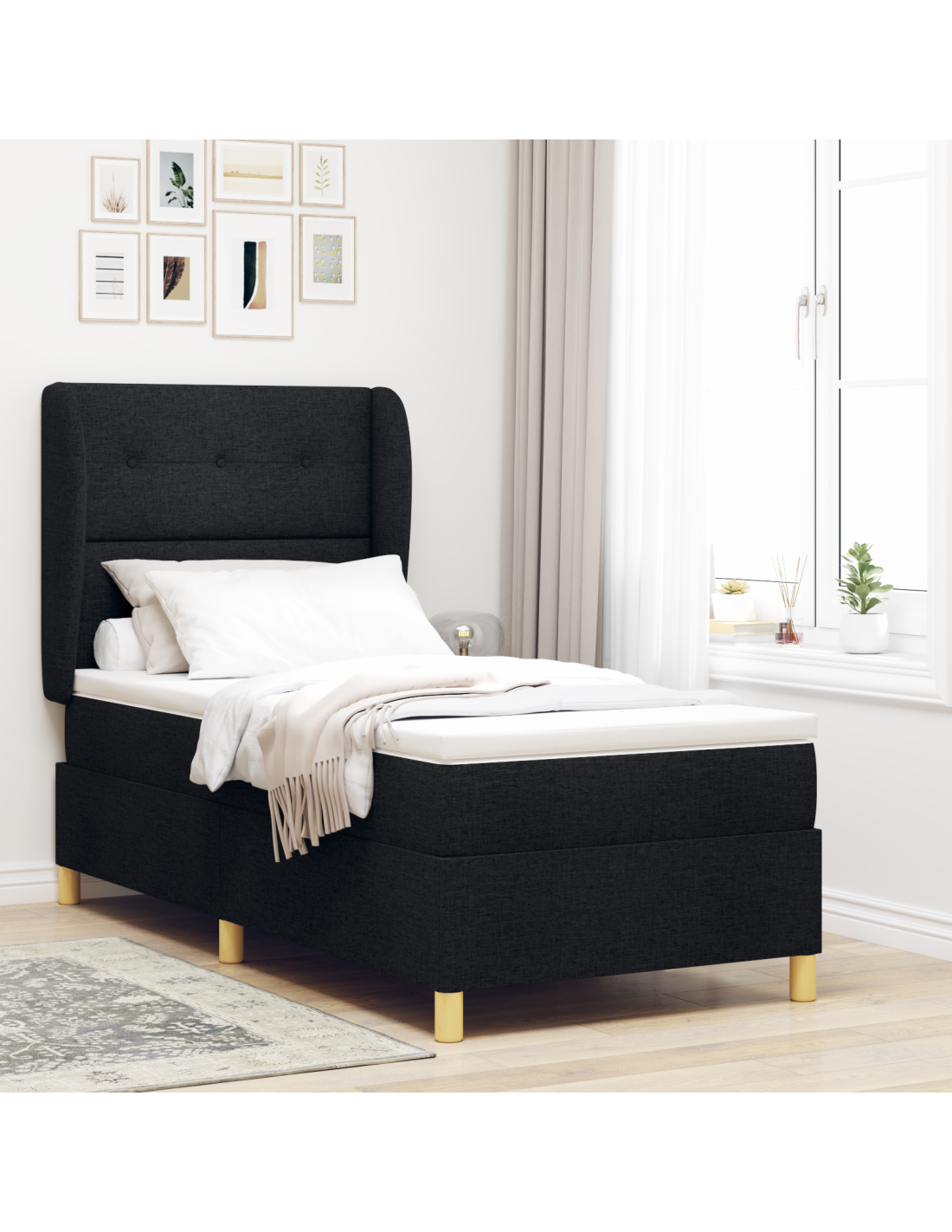 Il letto con molle e materasso in tessuto grigio scuro è dove lo stile moderno incontra la praticità. È un pezzo unico per qualsiasi camera da letto, con linee pulite e un look semplice. È un grande mix di comfort e robustezza, perfetto per tutti.