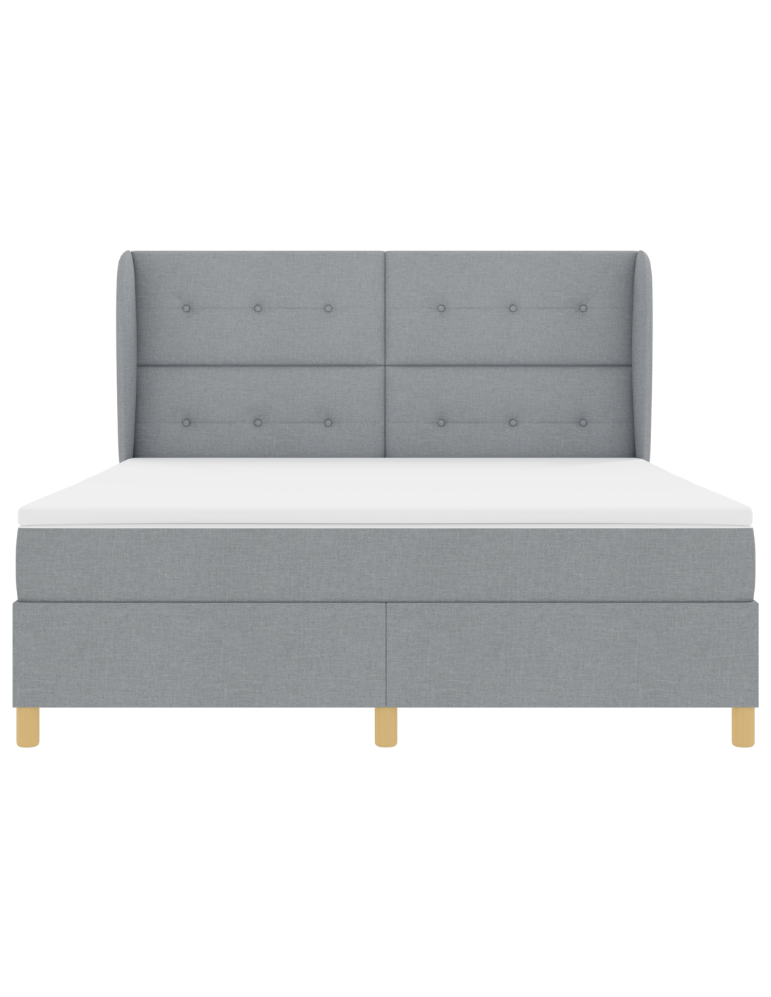 Il letto con molle e materasso in tessuto grigio scuro è dove lo stile moderno incontra la praticità. È un pezzo unico per qualsiasi camera da letto, con linee pulite e un look semplice. È un grande mix di comfort e robustezza, perfetto per tutti.