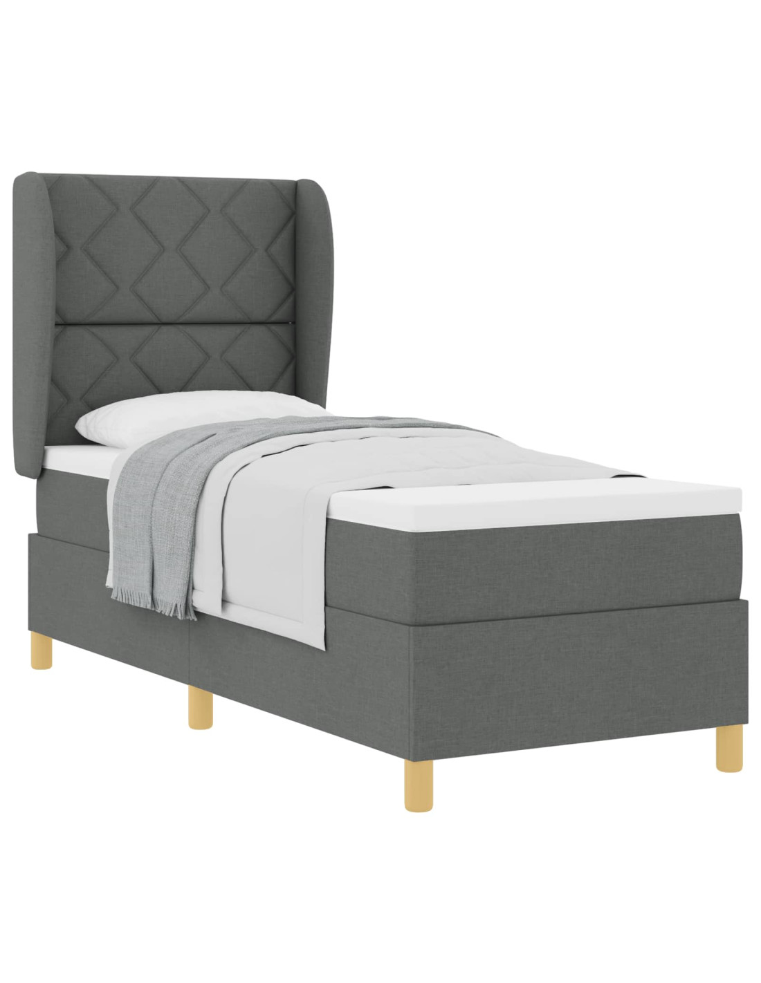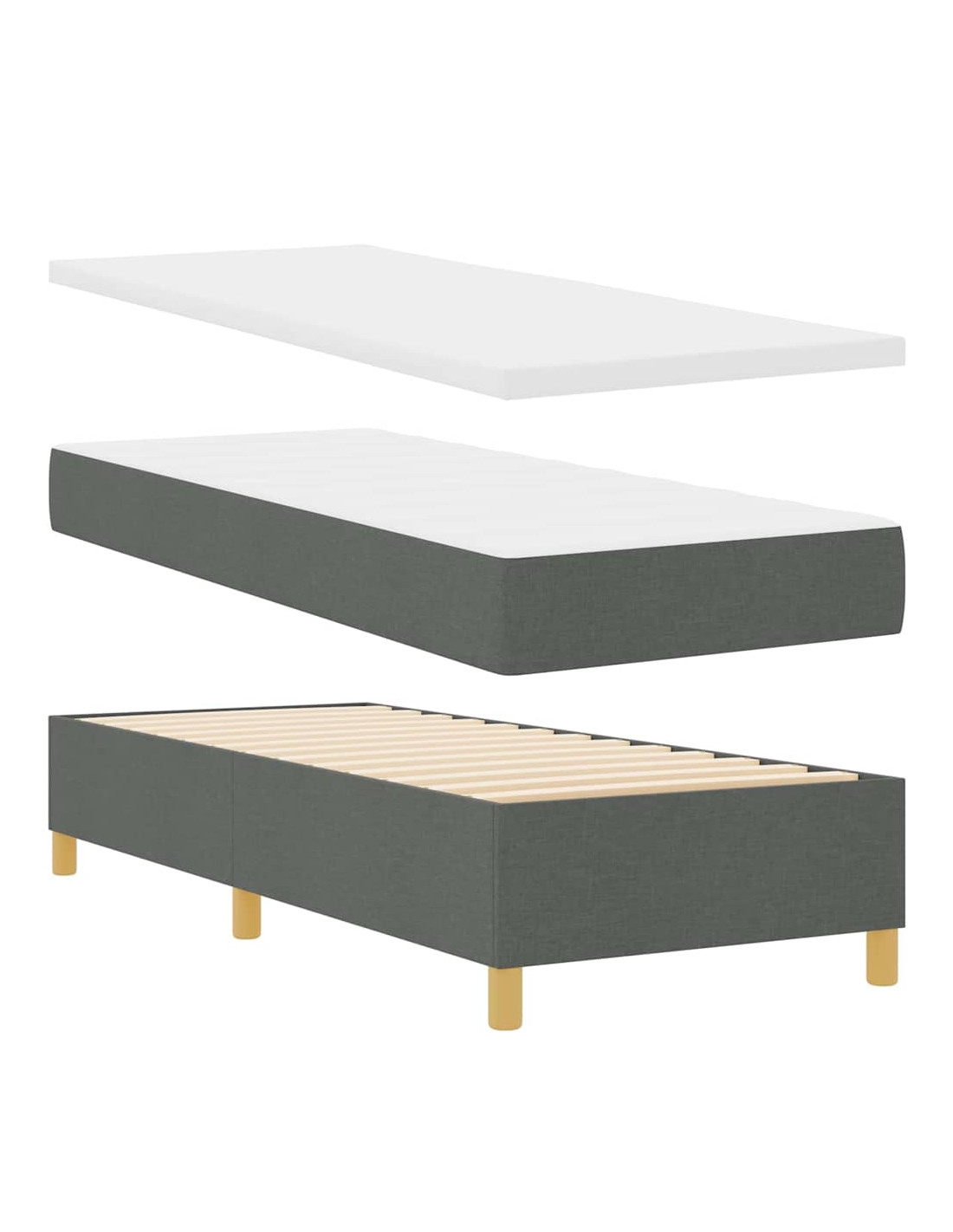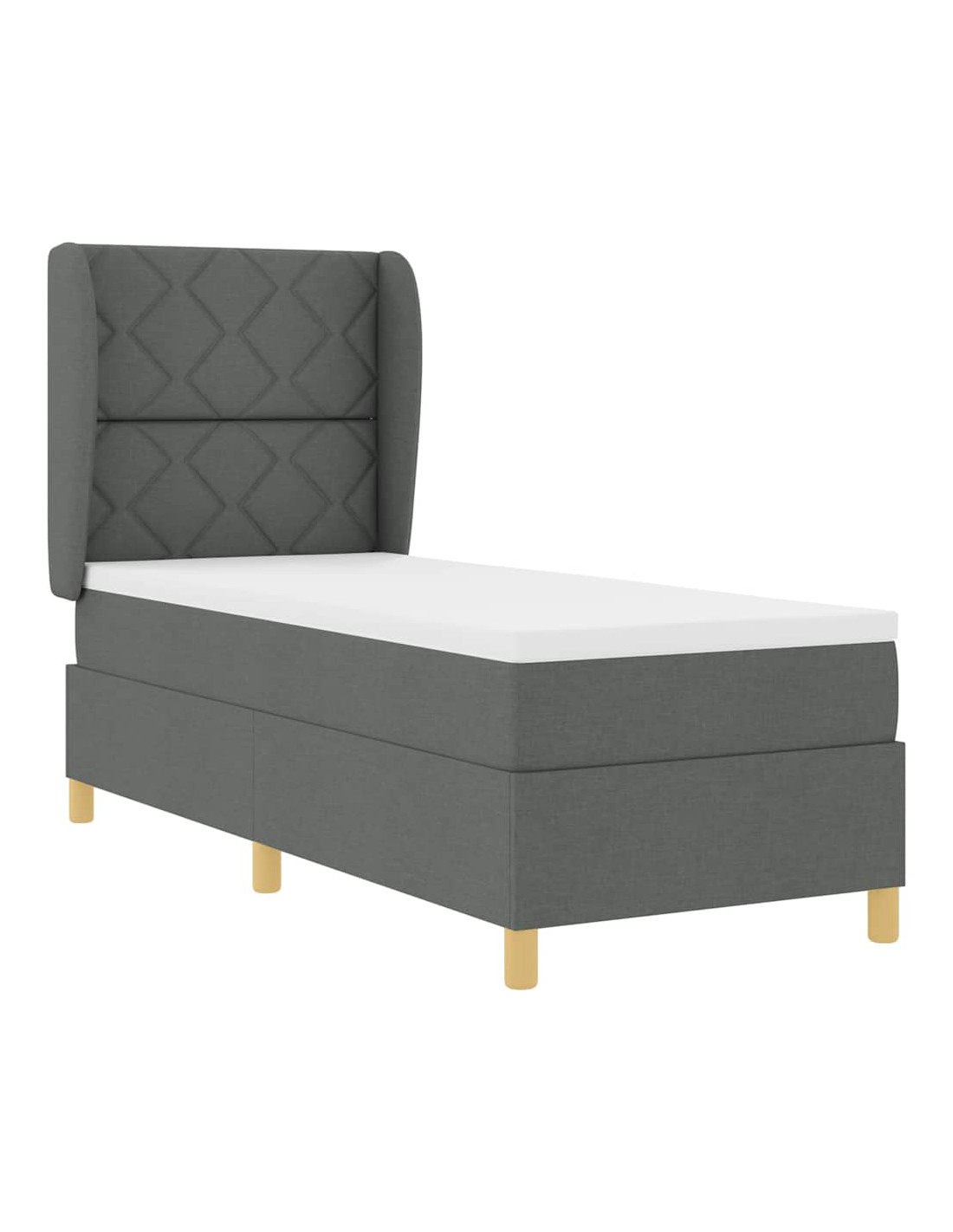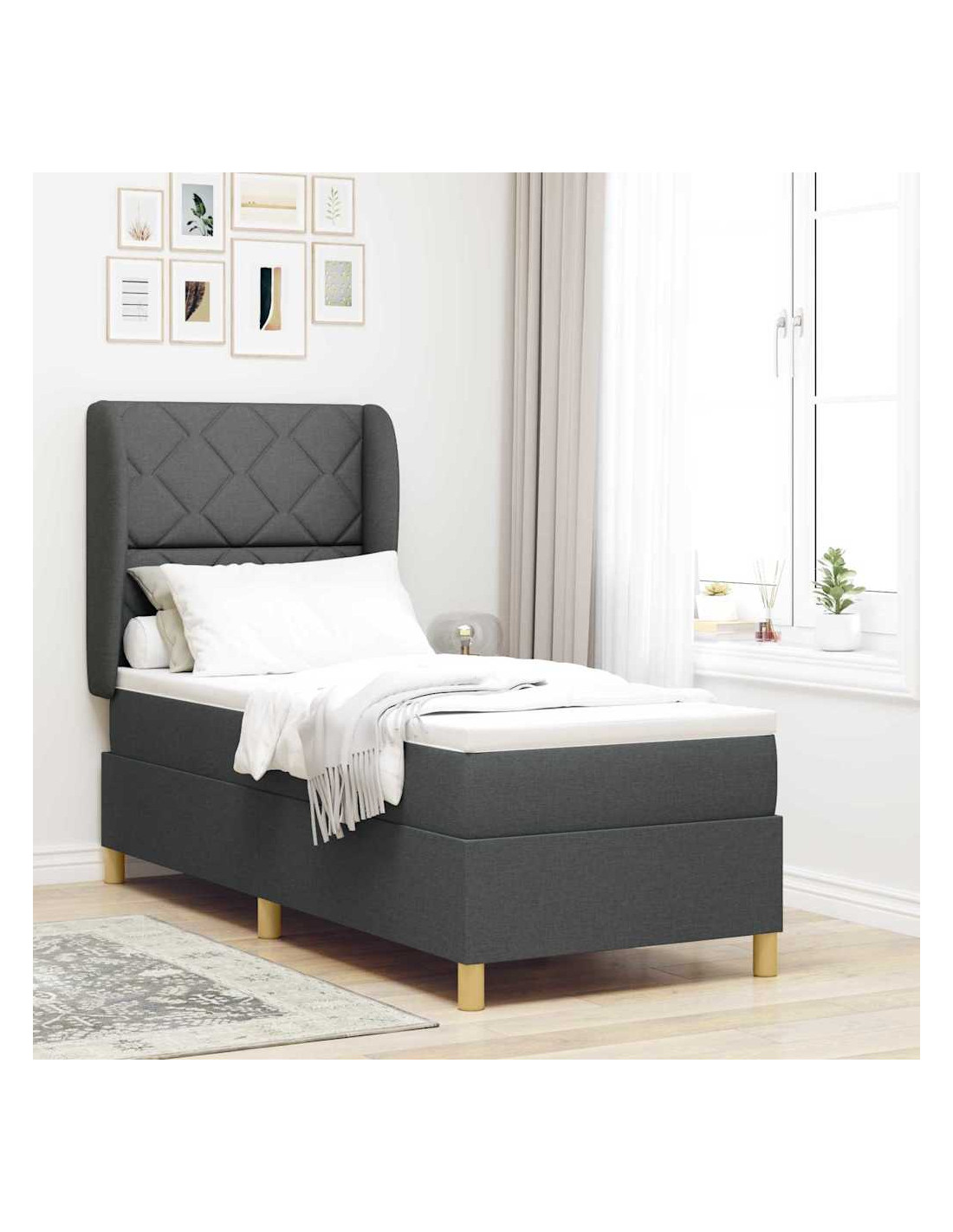 Il letto con molle e materasso in tessuto grigio scuro è dove lo stile moderno incontra la praticità. È un pezzo unico per qualsiasi camera da letto, con linee pulite e un look semplice. È un grande mix di comfort e robustezza, perfetto per tutti.