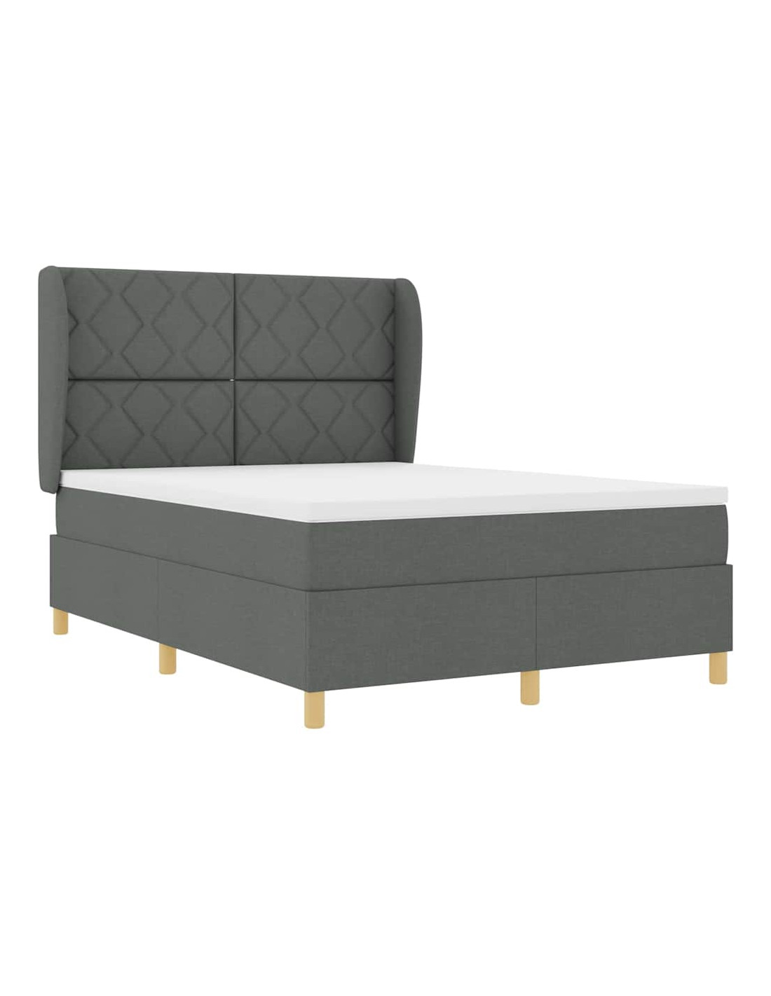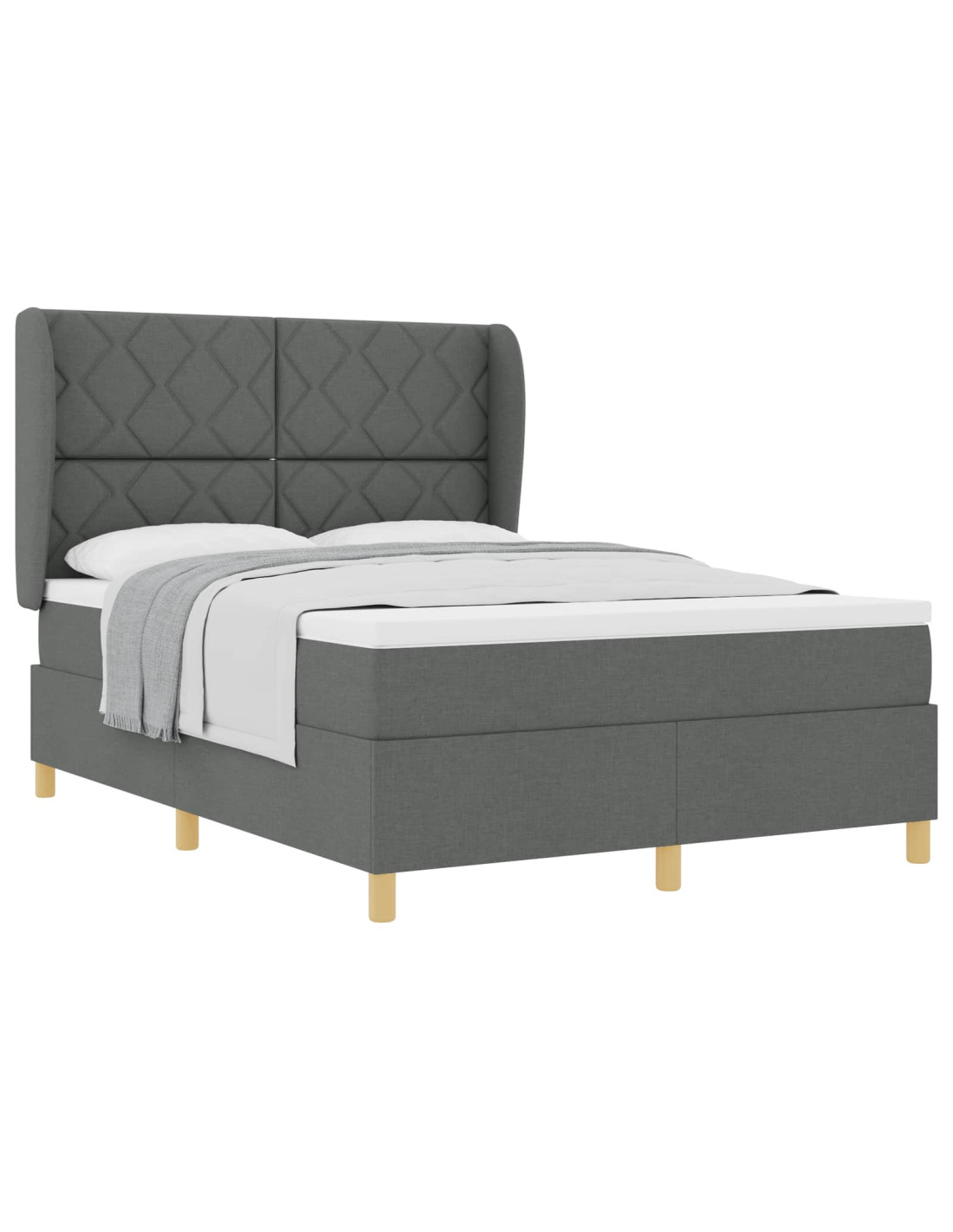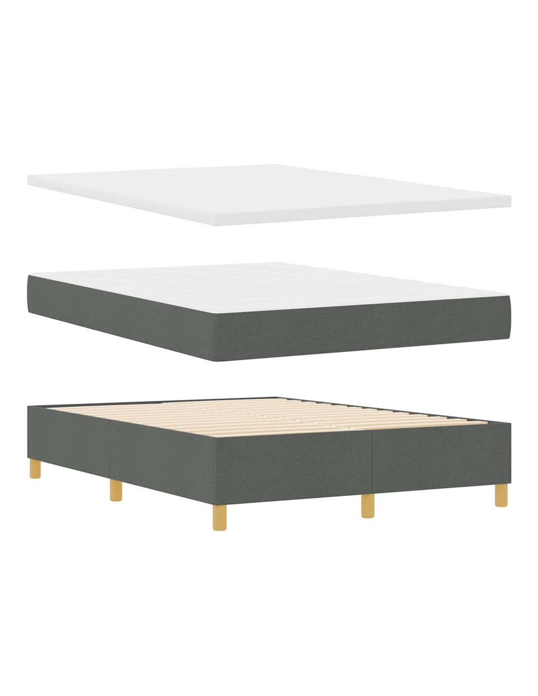 Il letto con molle e materasso in tessuto grigio scuro è dove lo stile moderno incontra la praticità. È un pezzo unico per qualsiasi camera da letto, con linee pulite e un look semplice. È un grande mix di comfort e robustezza, perfetto per tutti.