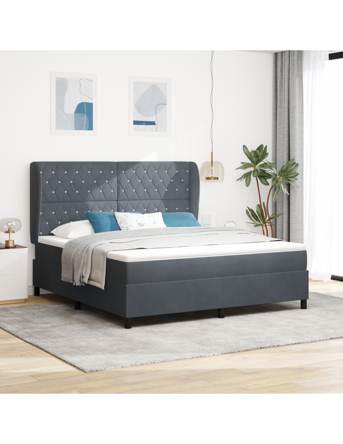 Il letto a molle moderno ha un design semplice ed elegante che si distingue per la sua utilità, con linee pulite e senza dettagli truccati. Questo letto si adatta a tanti stili e si integra perfettamente con un arredamento moderno in qualsiasi camera. È fatto per offrire il giusto mix di supporto e conforto, perfetto per chi cerca stile e praticità nei propri sogni.