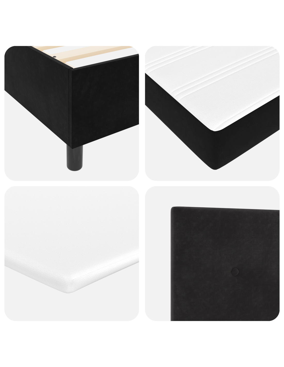 - Dettagli pratici: Il letto ha gambe nere robuste che forniscono una base sicura e elegante. Il meccanismo di regolazione manuale della testiera permette di avere controllo sul design. Questa combinazione aumenta il comfort e la praticità complessivi del letto.