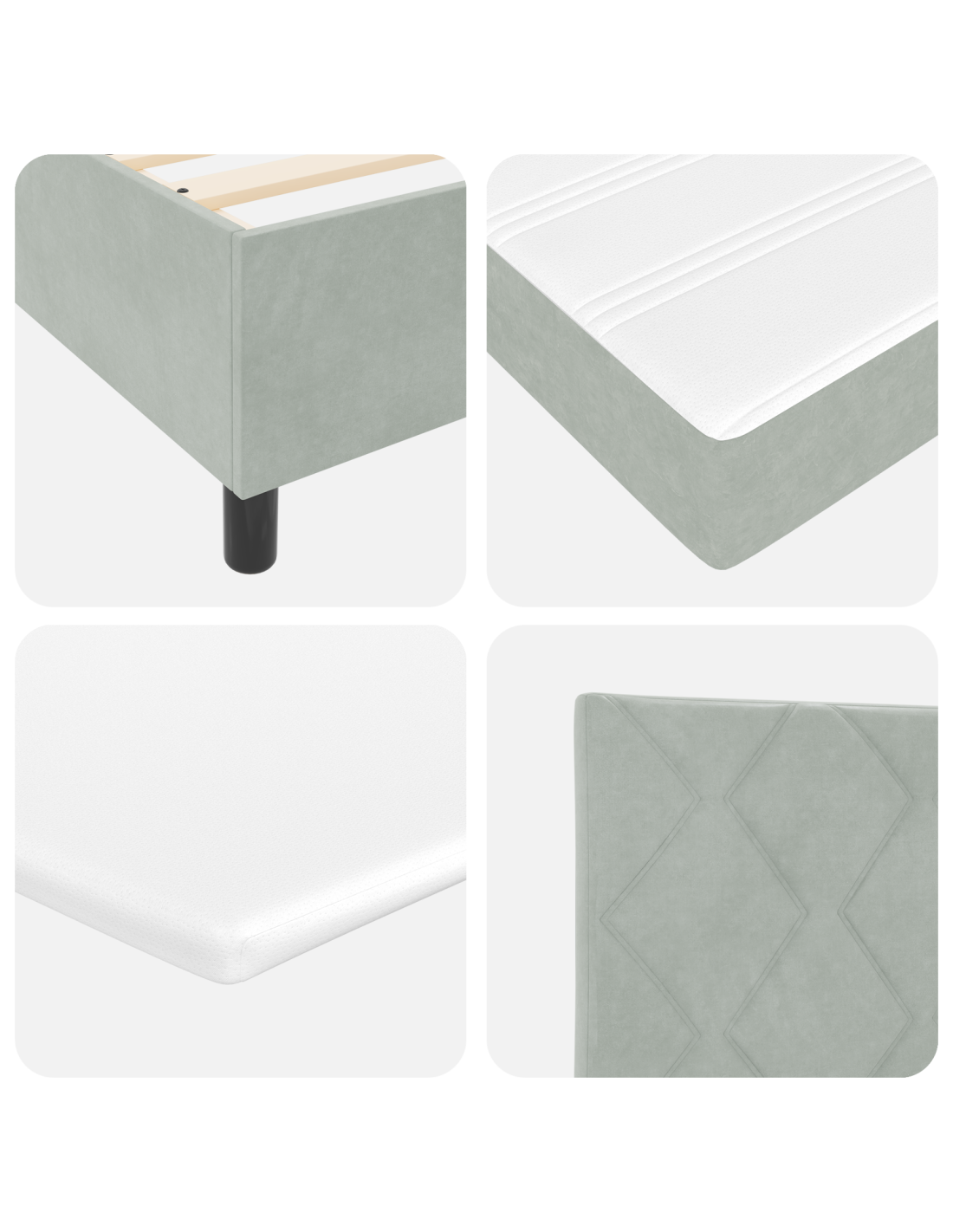 Il letto a molle moderno ha un design semplice ed elegante che si distingue per la sua utilità, con linee pulite e senza dettagli truccati. Questo letto si adatta a tanti stili e si integra perfettamente con un arredamento moderno in qualsiasi camera. È fatto per offrire il giusto mix di supporto e conforto, perfetto per chi cerca stile e praticità nei propri sogni.