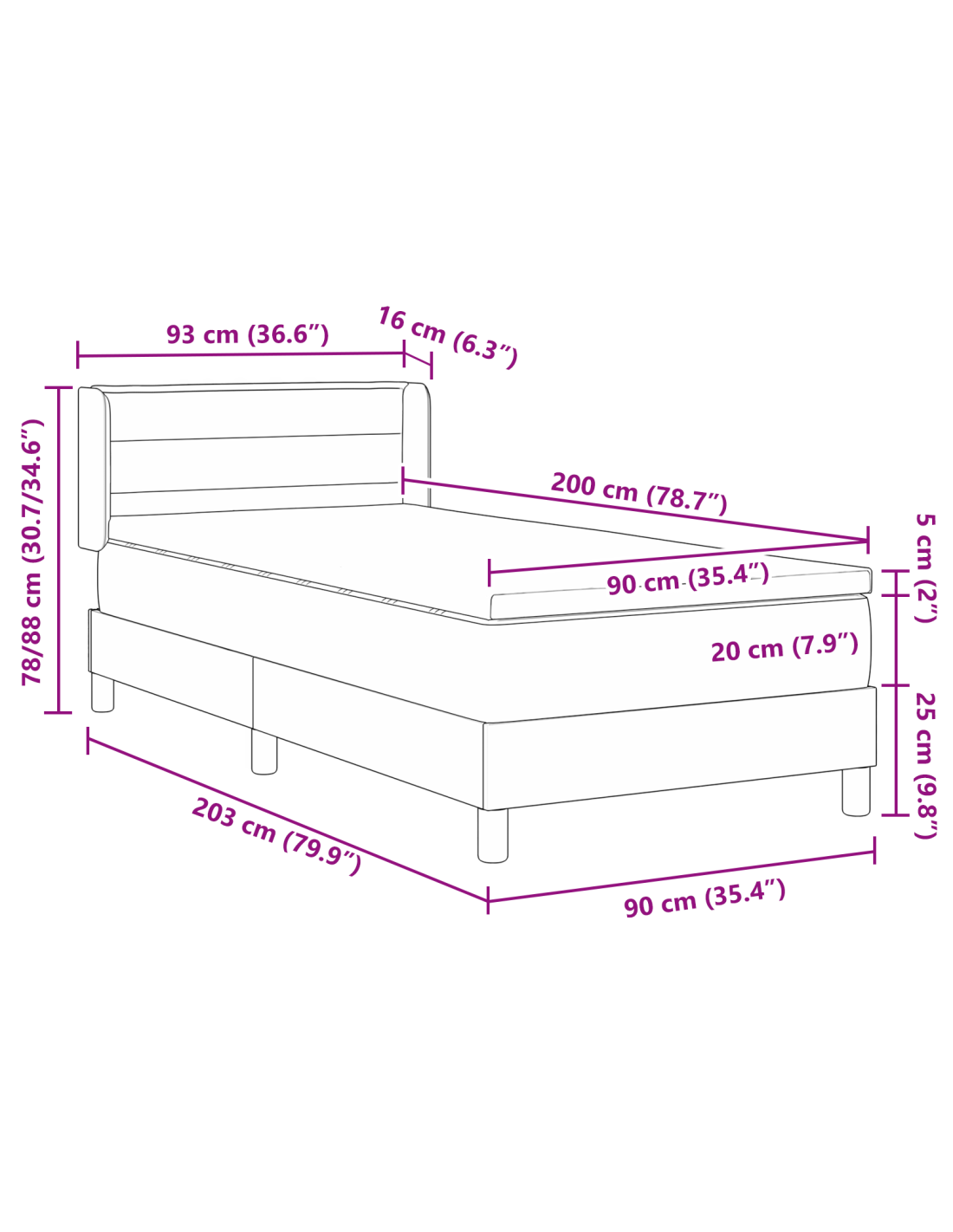 - Dimensione materasso: Singolo (90 cm x 200 cm / 35" x 79")