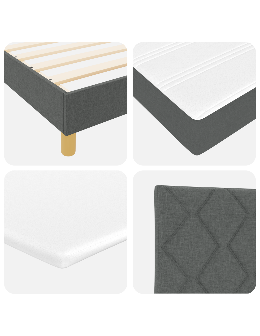 - Materiali: La struttura è in legno ingegnerizzato e pino massello, offrendo una base robusta. Il poliestere nella testiera e nel materasso garantisce traspirabilità per un sonno fresco e confortevole. I materiali scelti assicurano durata con un aspetto moderno e elegante, adatto a tanti stili d'interni.