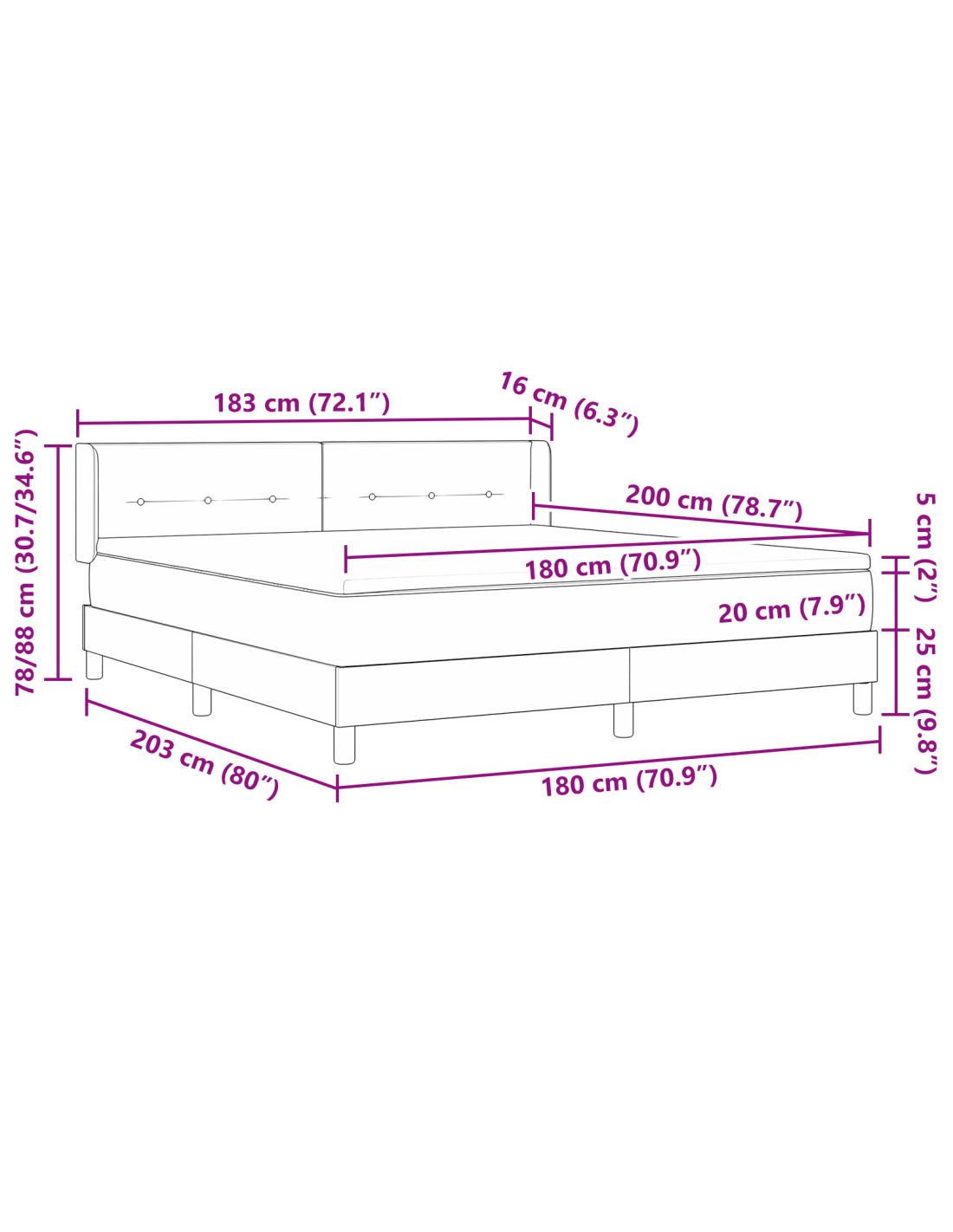 - Dimensione del materasso compatibile: Super king (180 cm x 200 cm / 71" x 79")