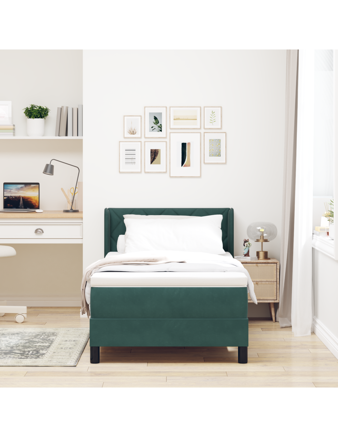 Questo letto a box spring moderno è un'aggiunta chic per ogni camera da letto, con un design minimalista e linee pulite. È fatto per combinare comfort e stile, perfetto per chi ama l'eleganza moderna. Si adatta a diversi stili di arredamento, rendendolo una scelta versatile per qualsiasi stanza. Ideale per singoli o coppie, garantisce notti tranquille in un ambiente di classe.