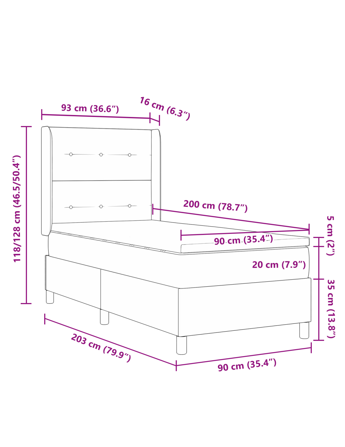 - Dimensione materasso: Singolo (90 cm x 200 cm / 35" x 79")