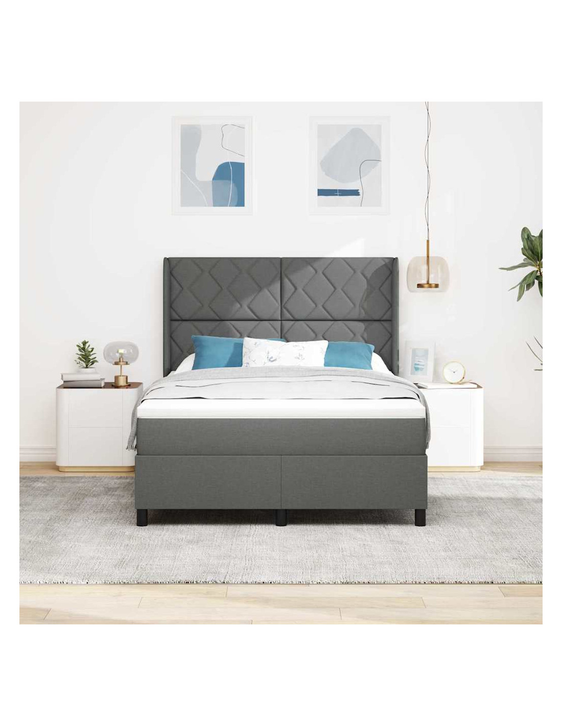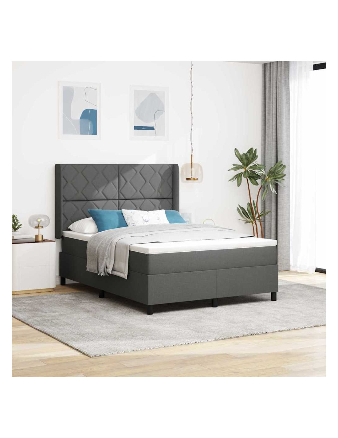 Questo moderno telaio del letto con molle e materasso combina senza sforzo stile e funzionalità, rendendolo una scelta ideale per camere da letto contemporanee. La sua forma rettangolare e il design semplice consentono di adattarsi perfettamente a qualsiasi ambiente, offrendo una superficie spaziosa per sonno o relax. L'approccio minimalista conferisce un'atmosfera fresca, attraente per chi apprezza funzionalità ed eleganza discreta.