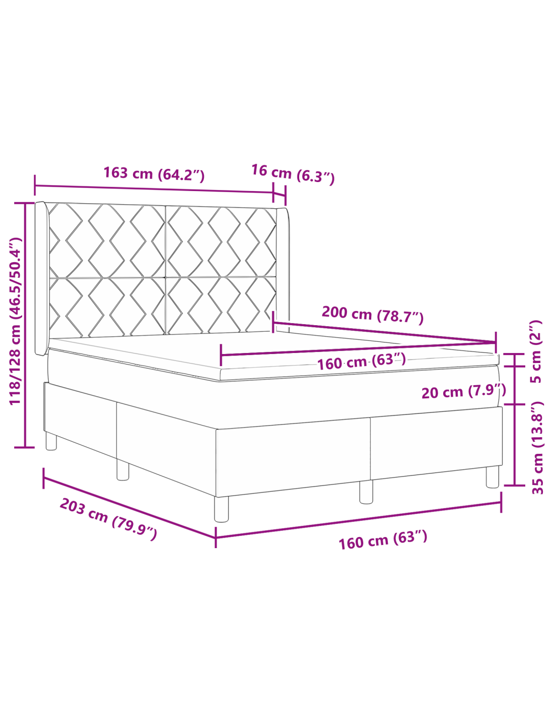 - Dimensione materasso: King (160 cm x 200 cm / 63" x 79")