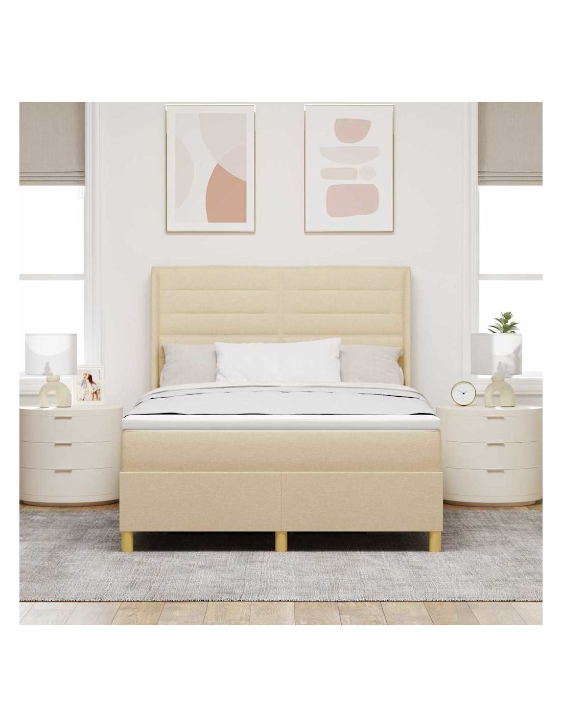 Il letto a molle moderno è perfetto per rendere la tua camera un rifugio accogliente. Con linee pulite e decorazioni minime, si adatta perfettamente agli amanti dell'arredamento moderno. La testiera regolabile in altezza si adatta a qualsiasi esigenza e stile della stanza. Il design sobrio ma elegante lo rende compatibile con vari stili d'interni, offrendo un giusto mix di morbidezza e supporto grazie al materasso medio e notti di sonno rigeneranti.