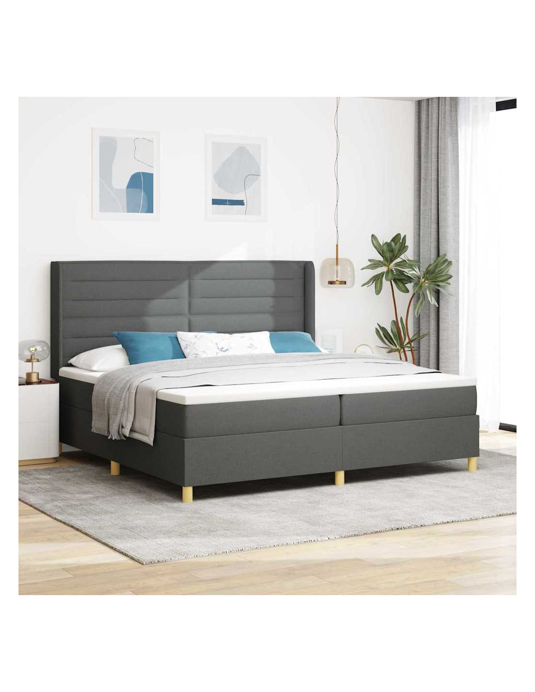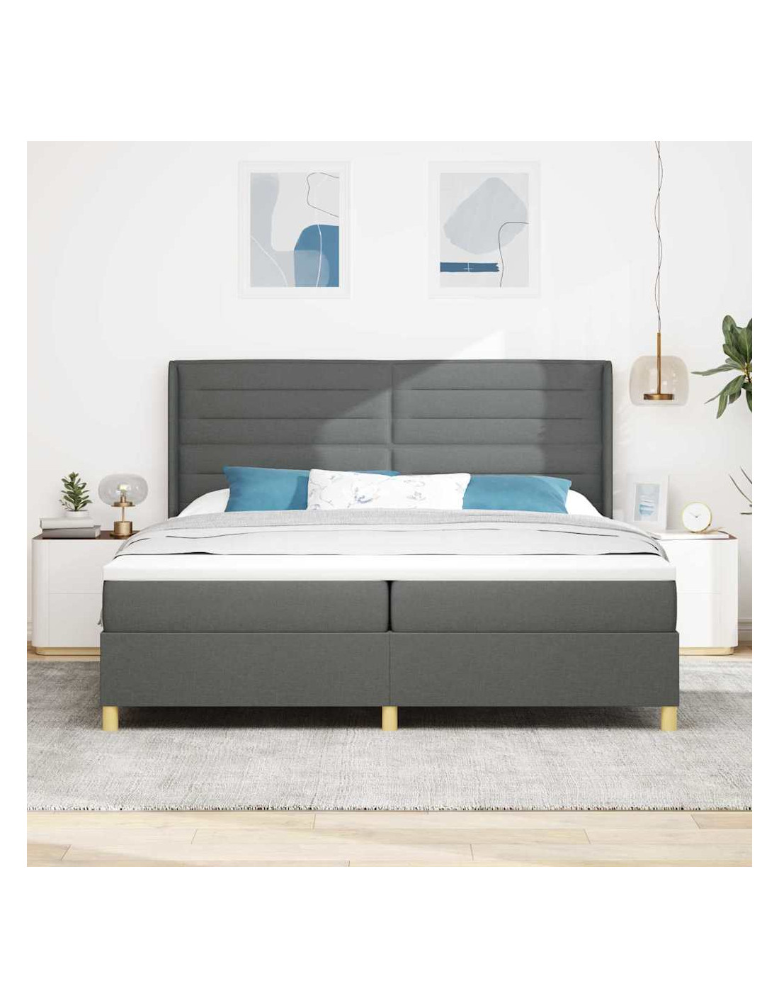 Il letto a molle moderno è perfetto per rendere la tua camera un rifugio accogliente. Con linee pulite e decorazioni minime, si adatta perfettamente agli amanti dell'arredamento moderno. La testiera regolabile in altezza si adatta a qualsiasi esigenza e stile della stanza. Il design sobrio ma elegante lo rende compatibile con vari stili d'interni, offrendo un giusto mix di morbidezza e supporto grazie al materasso medio e notti di sonno rigeneranti.