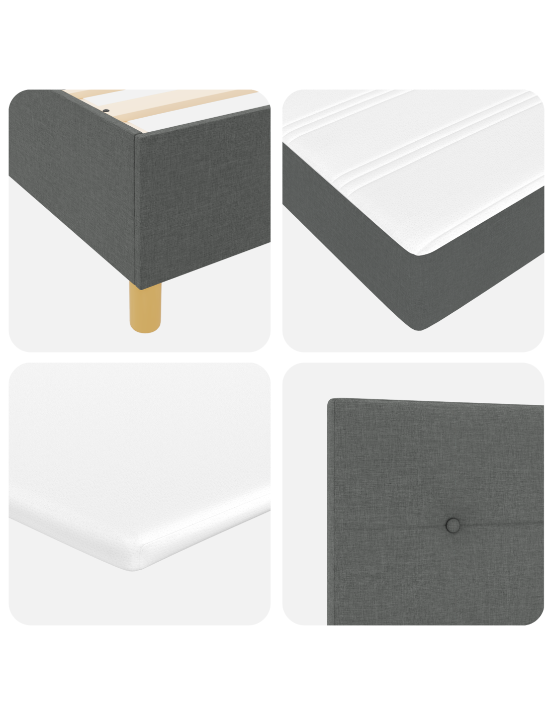 - Supporto fondamentale solido: Costruito con un telaio in legno ingegnerizzato e doghe rigide, questo letto a molle fornisce un supporto stabile nel tempo. È ideale per mantenere il materasso ben ventilato e ne preserva la longevità, il tutto abbinato a un design moderno.