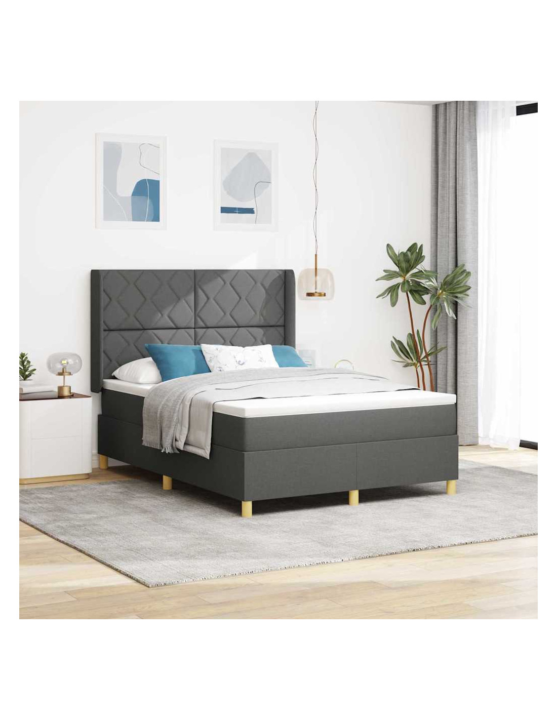 Il letto a molle moderno è perfetto per rendere la tua camera un rifugio accogliente. Con linee pulite e decorazioni minime, si adatta perfettamente agli amanti dell'arredamento moderno. La testiera regolabile in altezza si adatta a qualsiasi esigenza e stile della stanza. Il design sobrio ma elegante lo rende compatibile con vari stili d'interni, offrendo un giusto mix di morbidezza e supporto grazie al materasso medio e notti di sonno rigeneranti.