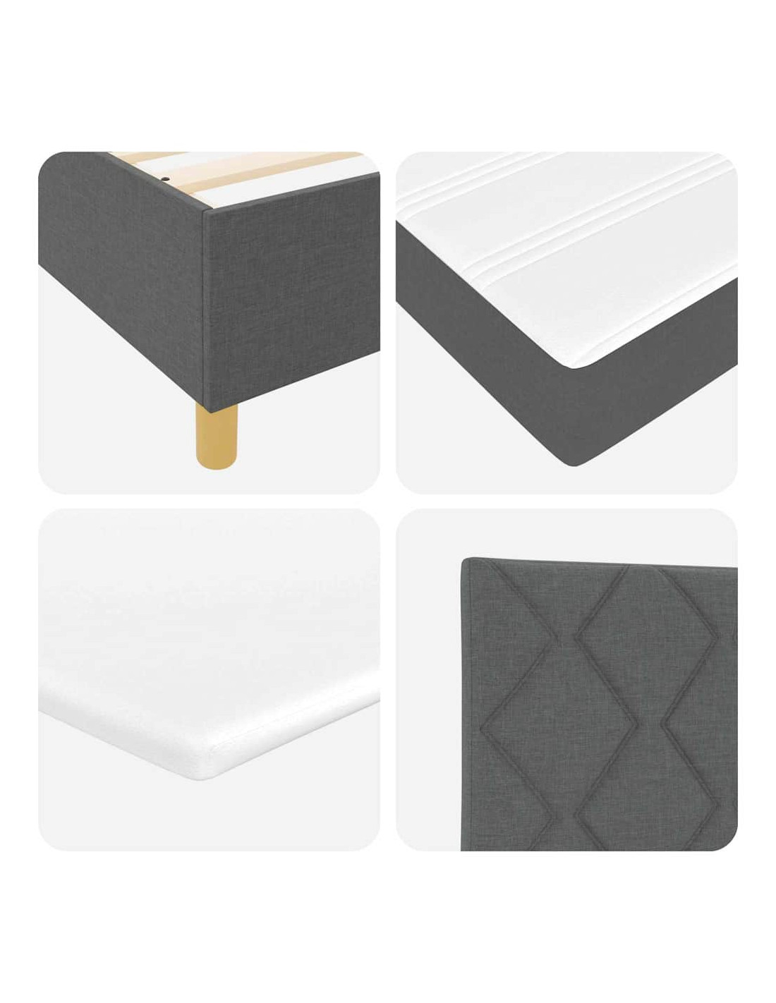 - Supporto fondamentale solido: Costruito con un telaio in legno ingegnerizzato e doghe rigide, questo letto a molle fornisce un supporto stabile nel tempo. È ideale per mantenere il materasso ben ventilato e ne preserva la longevità, il tutto abbinato a un design moderno.