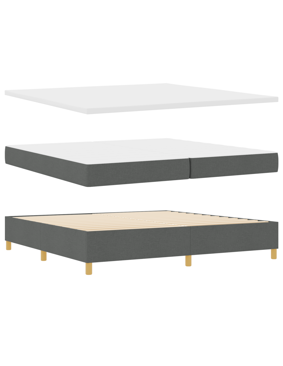 - Supporto fondamentale solido: Costruito con un telaio in legno ingegnerizzato e doghe rigide, questo letto a molle fornisce un supporto stabile nel tempo. È ideale per mantenere il materasso ben ventilato e ne preserva la longevità, il tutto abbinato a un design moderno.