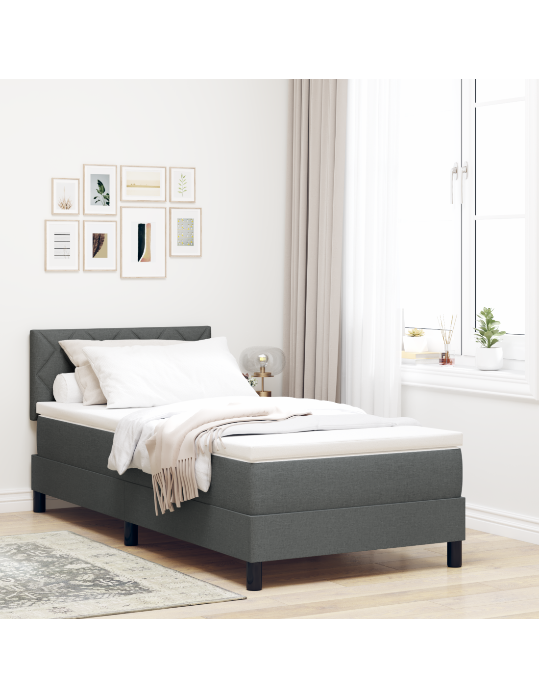 - Design Moderno: Il letto ha un aspetto fresco e semplice, con linee pulite e una finitura elegante. È pensato per essere funzionale e dar vita a un ambiente minimalista, aggiungendo un bel tocco a qualsiasi decorazione. Combina praticità ed eleganza, ideale per chi ama uno stile sobrio.