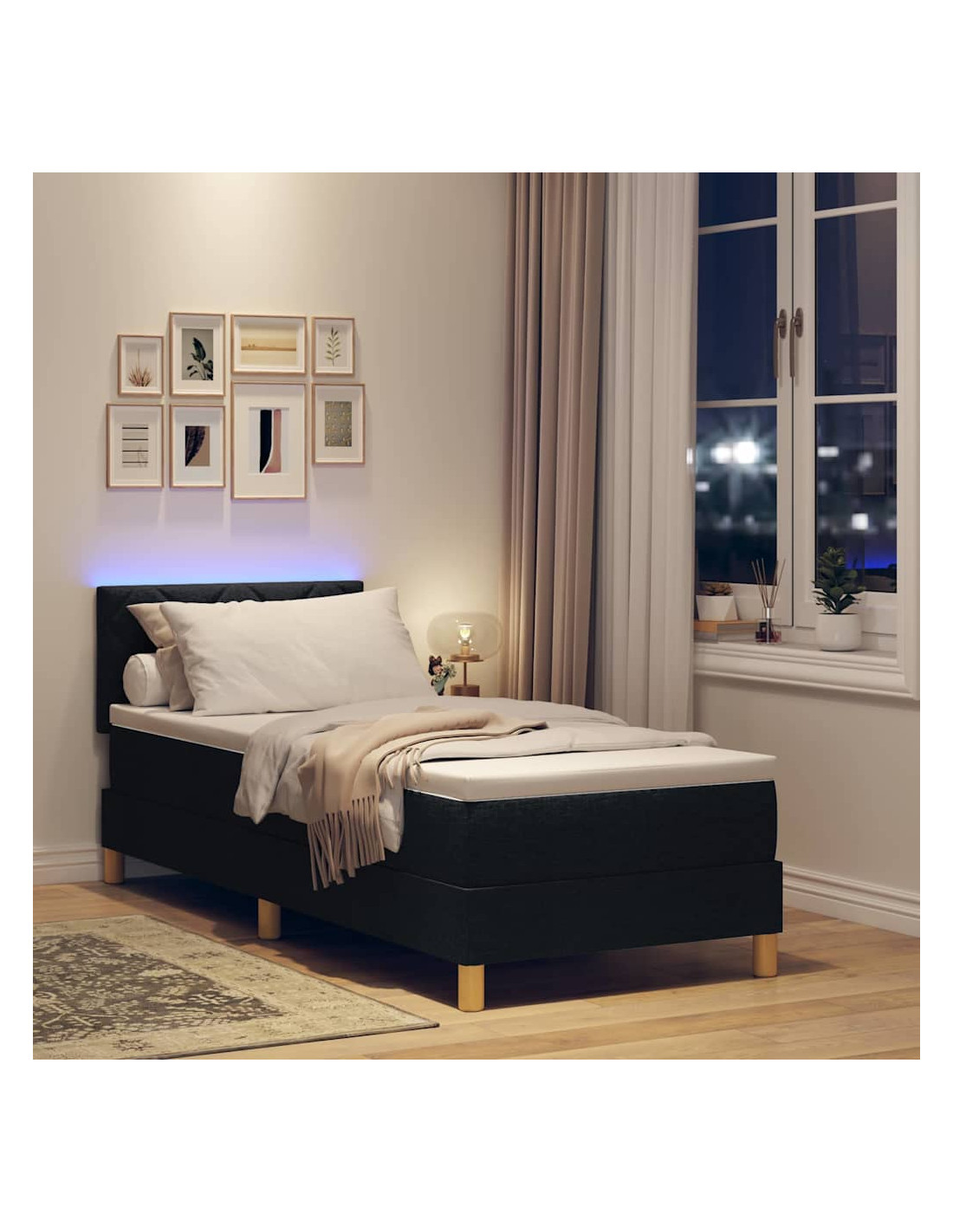 Questo letto a molle LED dà una marcia in più alla tua camera da letto con un design innovativo, funzionale e bello. La sua linea minimalista e le luci LED sono perfette per chi ama lo stile contemporaneo, facendolo diventare il centro dell’attenzione in ogni stanza. Realizzato con materiali di qualità, il telaio è sicuro e comodo, il tutto in un elegante pacchetto.