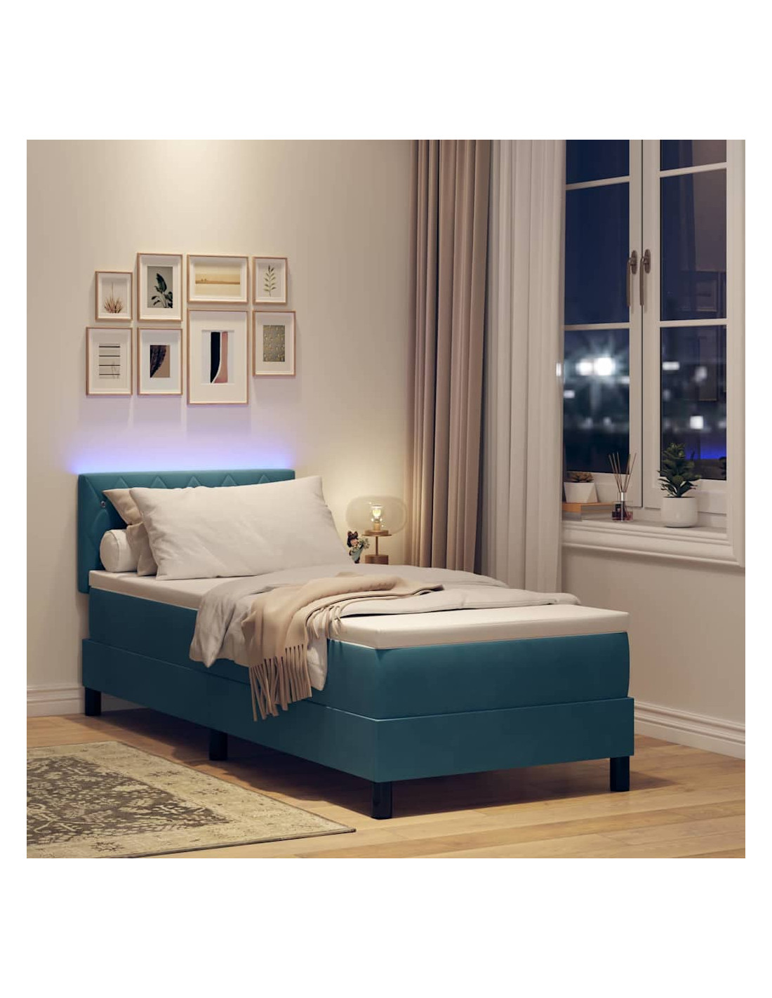 Questo letto a molle con LED è un vero gioiello moderno per chi ama le linee eleganti e la funzionalità. Con il suo stile contemporaneo e un look pulito, diventa il pezzo forte di qualsiasi camera da letto, offrendo comfort e appeal visivo. Le strisce LED creano un'atmosfera dinamica da adattare al tuo umore, perfette per serate di relax o incontri intimi. La testiera regolabile e il velluto traspirante lo rendono una scelta versatile per chi cerca la combinazione perfetta tra comfort e lusso moderno.