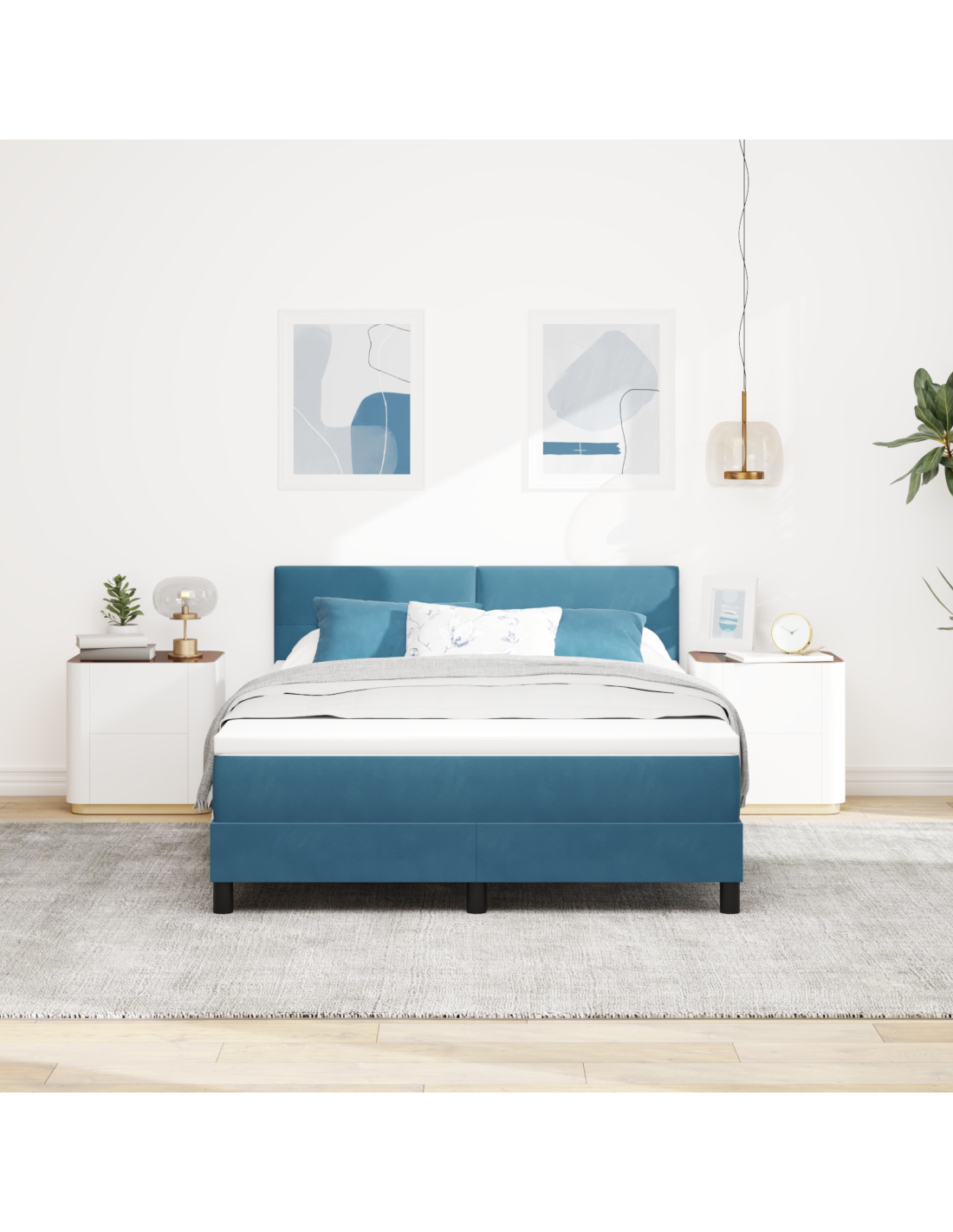 - Materiali: Il letto è fatto di velluto che dà un'aria di classe, offrendo una superficie morbida e traspirante per il relax. Il legno ingegnerizzato sostiene la struttura e il legno massello di pino aggiunge eleganza. Questa combinazione assicura durata e un aspetto sempre in voga nella tua camera da letto moderna.