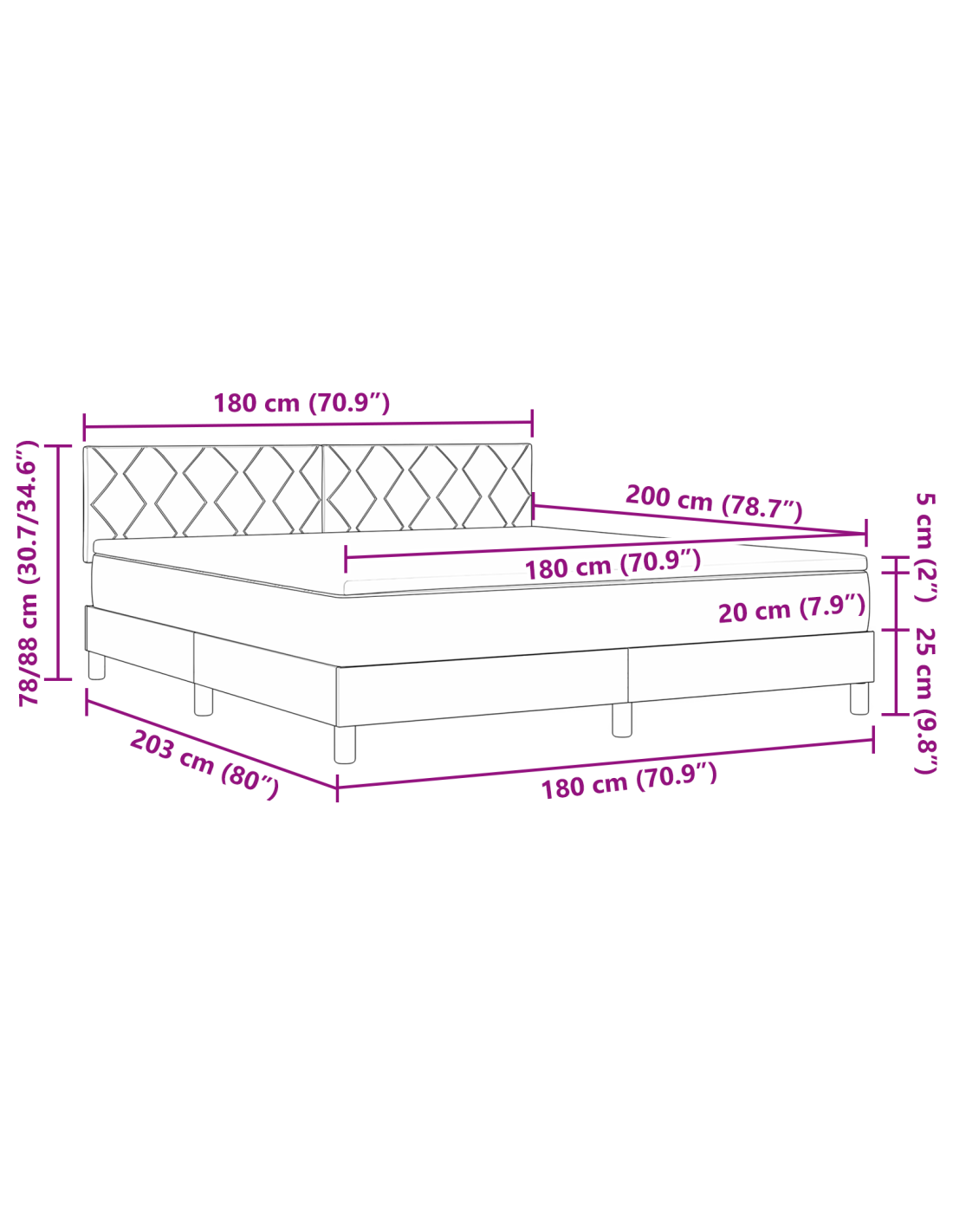 - 1x Letto: 203 x 163 x 25 cm (LxWxH)