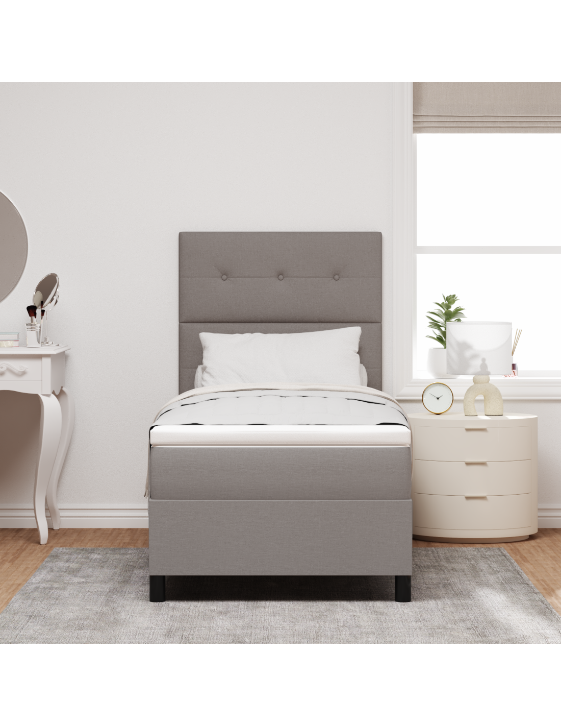 Questo letto box spring colpisce per il suo aspetto e per la funzionalità, ed è un'ottima scelta per le camere moderne. Con le sue linee pulite e uno stile semplice, diventa un punto focale in qualsiasi ambiente. È progettato per soddisfare tutte le tue esigenze, offrendo una sensazione di medio-durezza con il suo materasso a molle insacchettate e garantendo comfort indipendentemente dalla tua posizione durante il sonno. Inoltre, la testiera regolabile si adatta facilmente a diversi spessori del materasso. Che tu stia dormendo o semplicemente rilassandoti, questo letto è tutto incentrato su comfort e praticità.