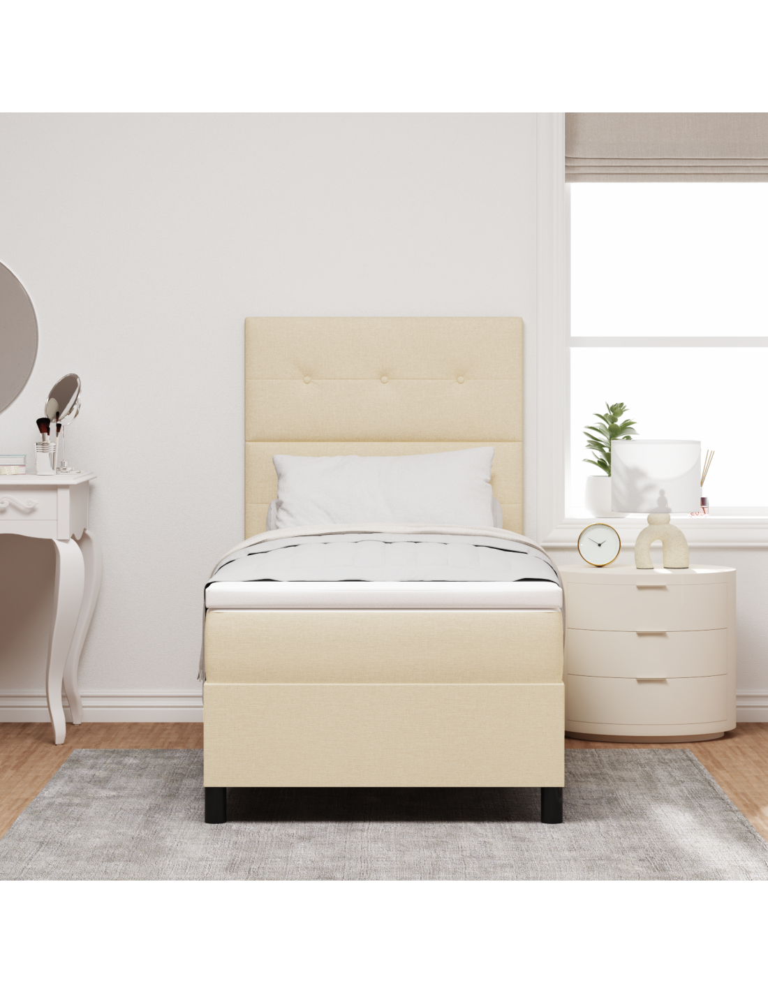 Questo letto box spring colpisce per il suo aspetto e per la funzionalità, ed è un'ottima scelta per le camere moderne. Con le sue linee pulite e uno stile semplice, diventa un punto focale in qualsiasi ambiente. È progettato per soddisfare tutte le tue esigenze, offrendo una sensazione di medio-durezza con il suo materasso a molle insacchettate e garantendo comfort indipendentemente dalla tua posizione durante il sonno. Inoltre, la testiera regolabile si adatta facilmente a diversi spessori del materasso. Che tu stia dormendo o semplicemente rilassandoti, questo letto è tutto incentrato su comfort e praticità.
