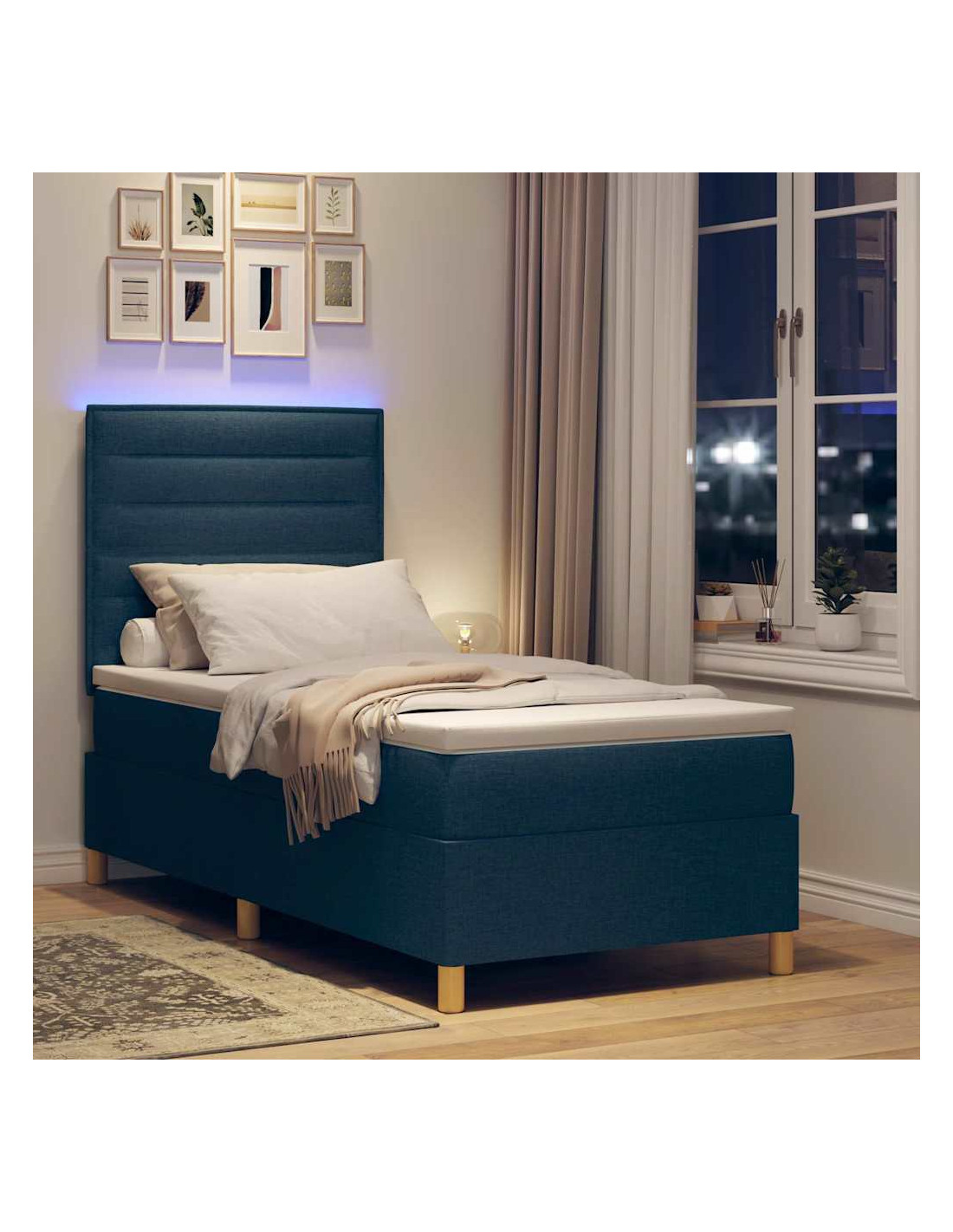 Questo letto a molle con LED è un grande protagonista in qualsiasi camera moderna. Con il suo design elegante e minimale, è ideale per chi ama lo stile semplice e funzionale. Realizzato con materiali resistenti e dotato di luci LED, è perfetto per il tuo angolo notturno, unendo estetica e praticità per una notte di riposo migliore.