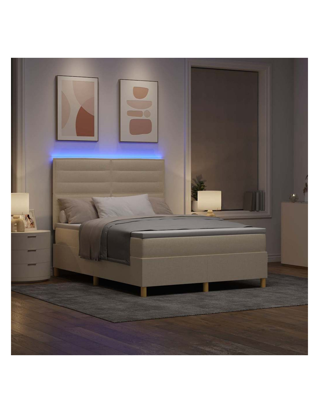 - Illuminazione LED: Rendi speciale il tuo spazio notte con le strisce RGB LED dietro la testiera. Con luci regolabili, creano un'atmosfera rilassata per ogni occasione, rendendo questa caratteristica sia bella che utile.